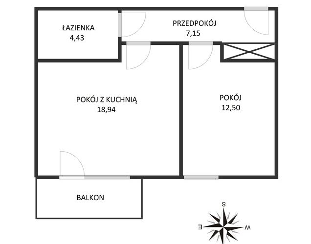 W skład mieszkania wchodzić będzie: salon z aneksem kuchennym o powierzchni 18,94m2, oddzielna sypialnia 12,5 m2, holu z wnęka na szafę pod zabudowę oraz łazienki o powierzchni 4,43m2.