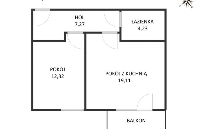W skład mieszkania wchodzić będzie: salon z aneksem kuchennym o powierzchni 19,11 m2, oddzielna sypialnia 12,32 m2, holu z wnęka na szafę pod zabudowę oraz łazienki o powierzchni 4,23 m2.