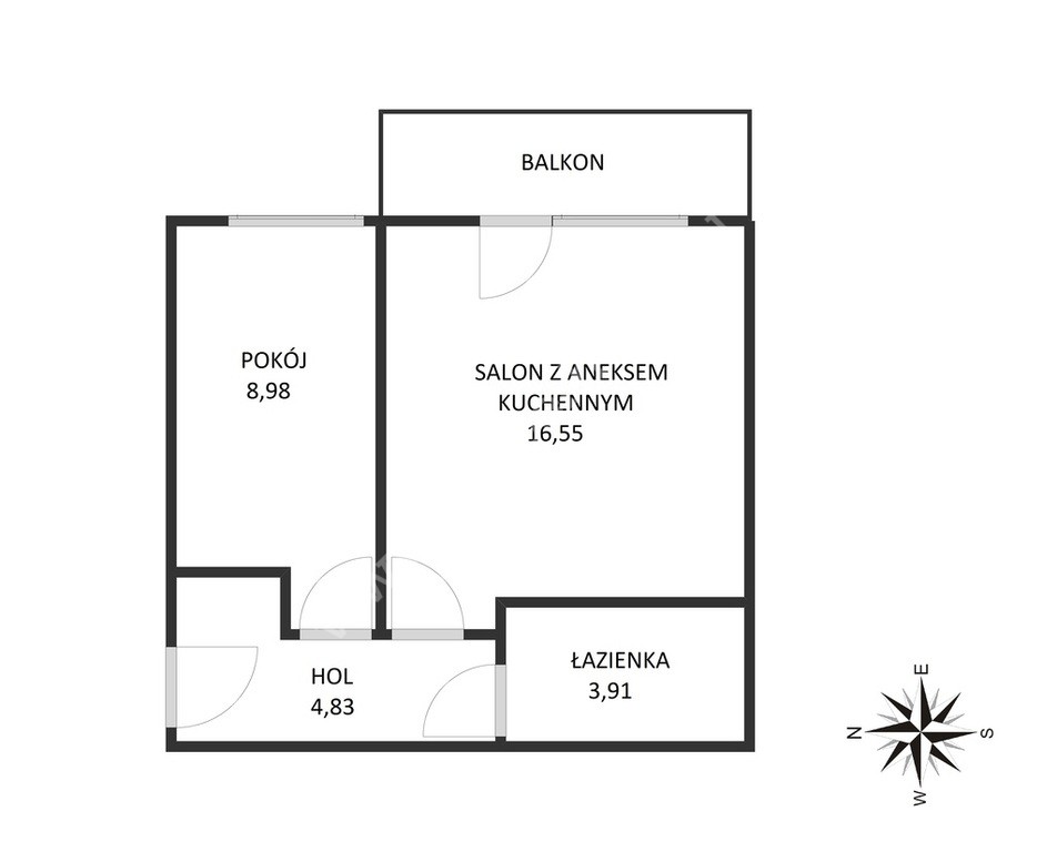 W skład mieszkania wchodzić będzie : salon z aneksem kuchennym o powierzchni 16,55m2, oddzielna sypialnia 8,95 m2, holu z wnęka na szafę pod zabudowę oraz łazienki o powierzchni 3,9m2.