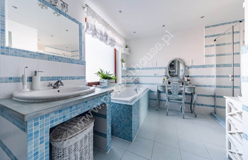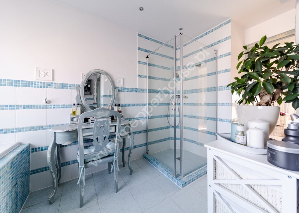 * duża łazienka z wanną oraz prysznicem