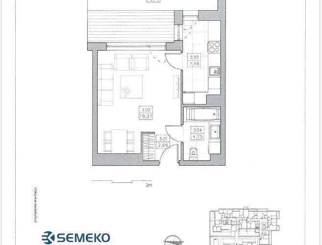 Sam lokal o powierzchni 34 m2 składa się z pokoju, oddzielnej kuchni oraz dużej łazienki.