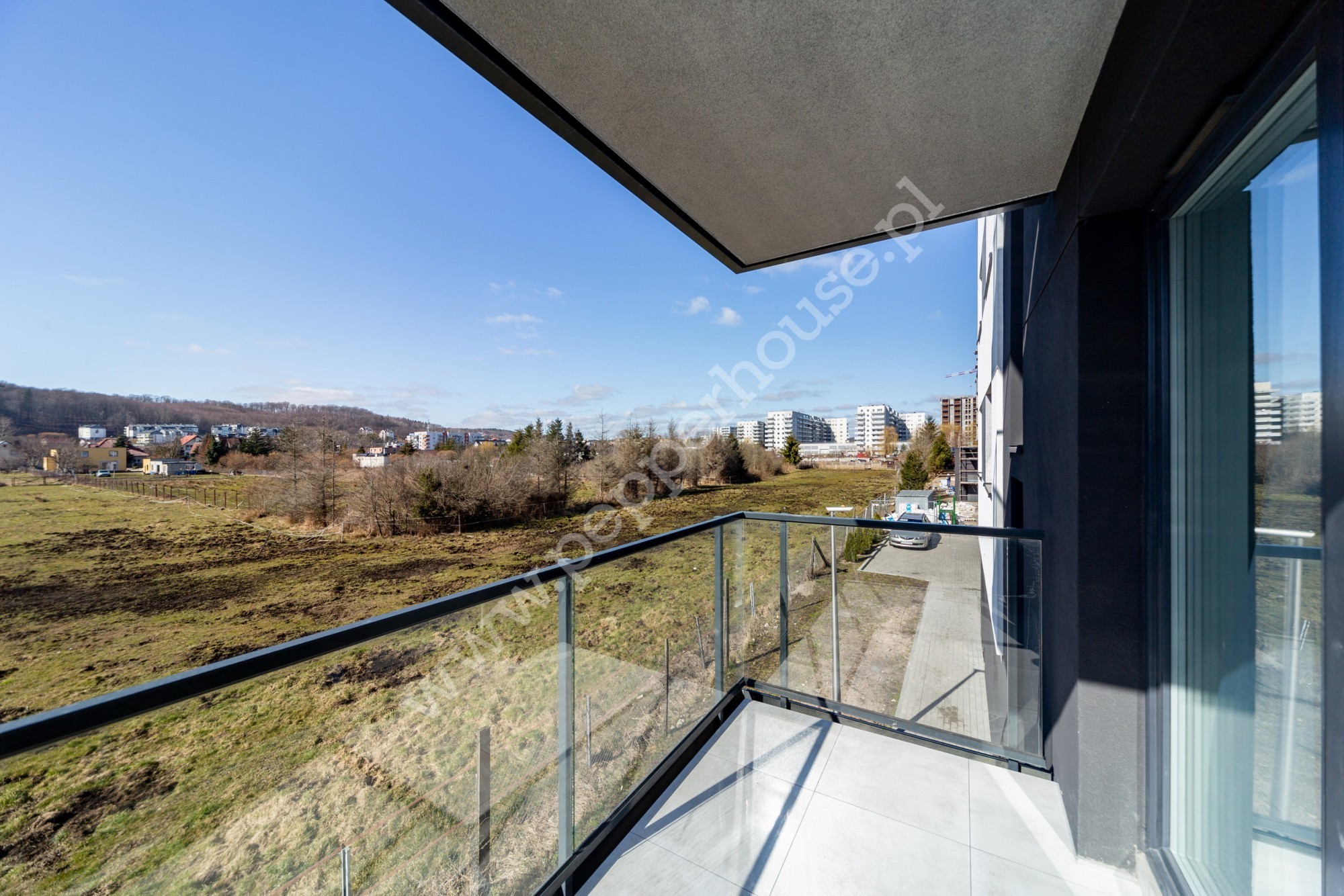 Sam lokal o powierzchni 28,05 m2 składa się z salonu z aneksem kuchennym, sypialni oraz łazienki. Wejście na przestronny balkon znajduje się w salonie.