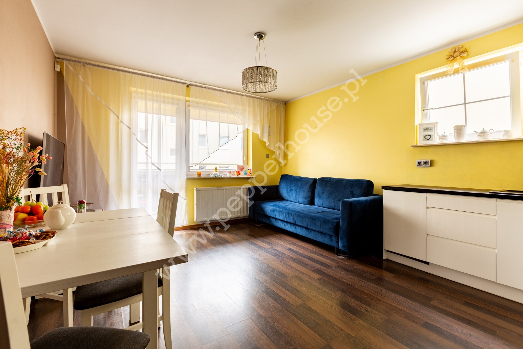 -jasny salon z aneksem kuchennym