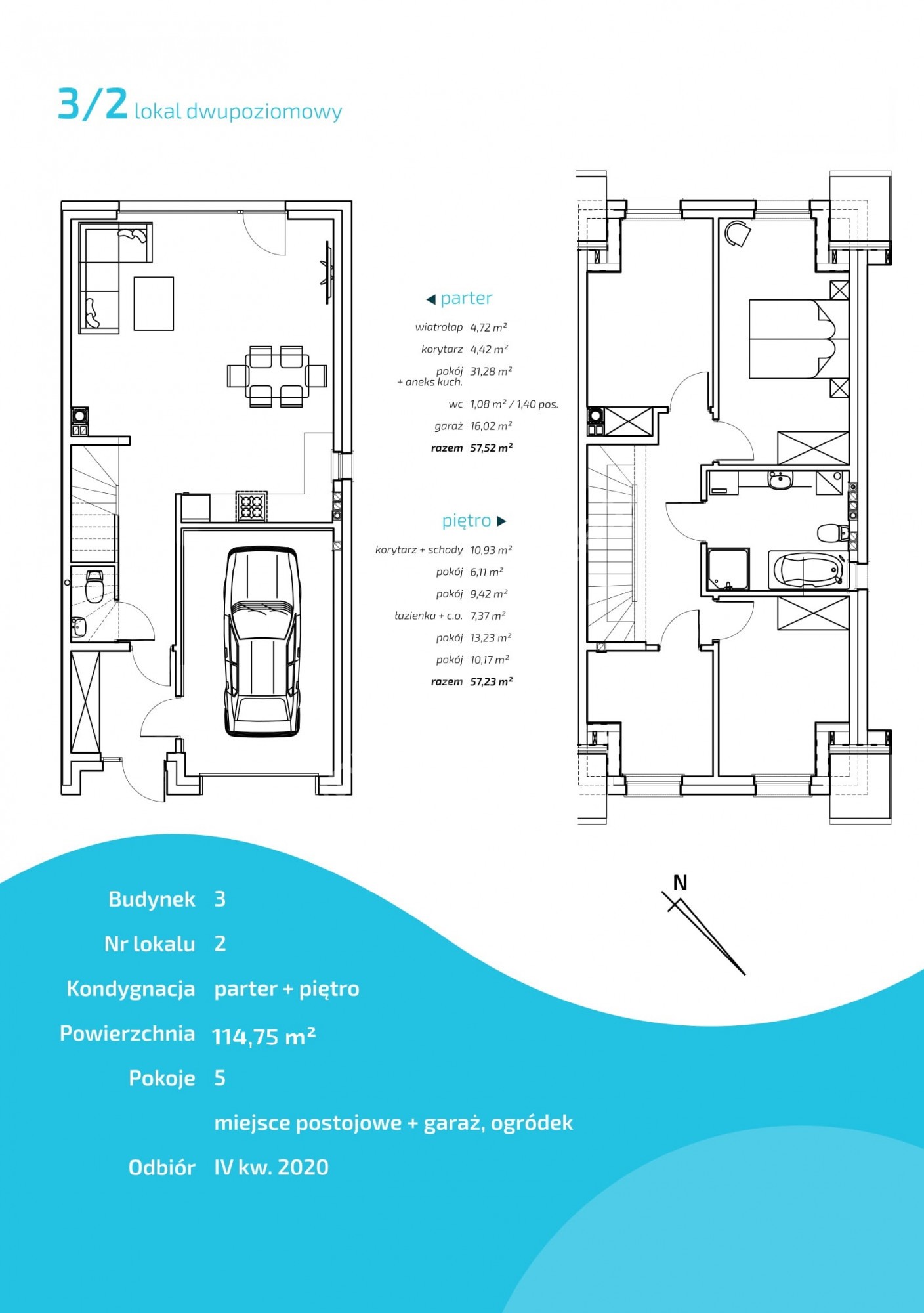Przestronny dwupoziomowy dom o powierzchni 114,75 m2 – z dodatkową powierzchnią na poddaszu.