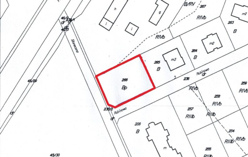 Działka budowlana w Rekowie Górnym przy ulicy Rubinowej, o powierzchni 816m2. Działka narożna, na zbiegu ulic Słonecznej i Rubinowej, położona jest na płaskim terenie w kształcie prostokąta (32,5x25m).