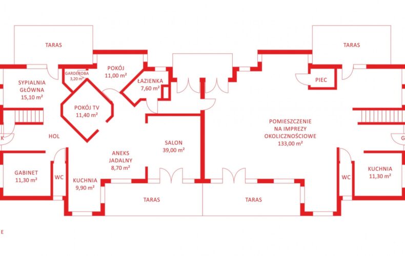 Cześć domu o powierzchni 133m2 – z przeznaczeniem na imprezy okolicznościowe.