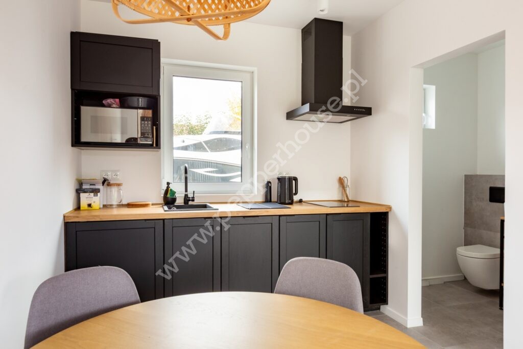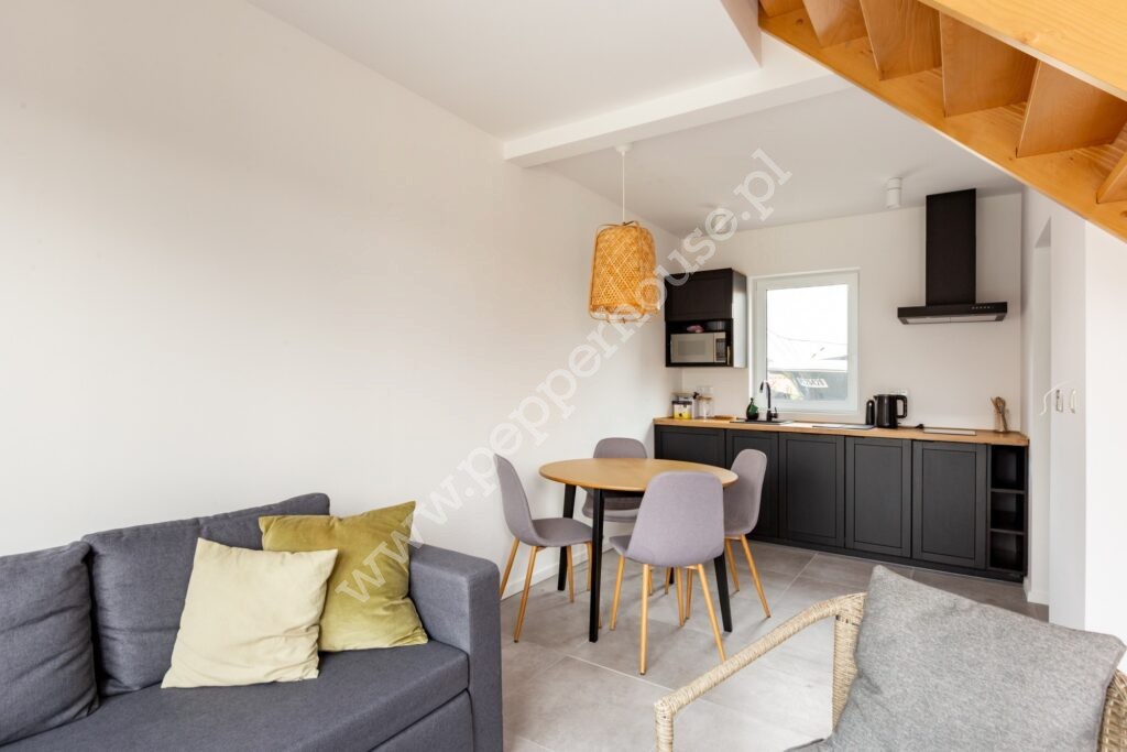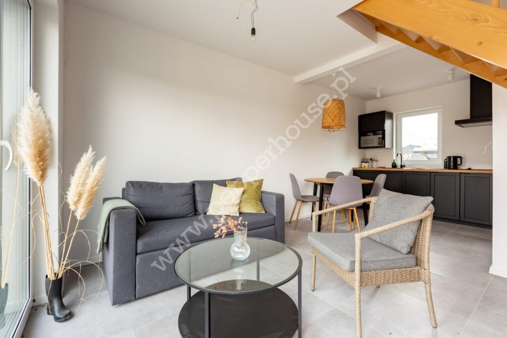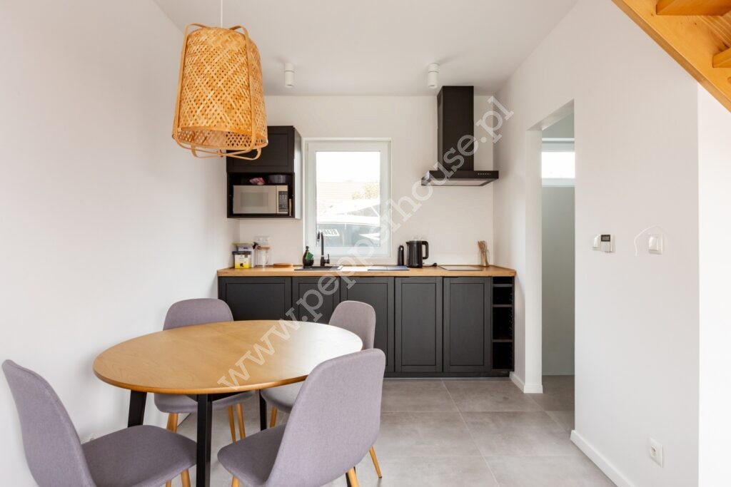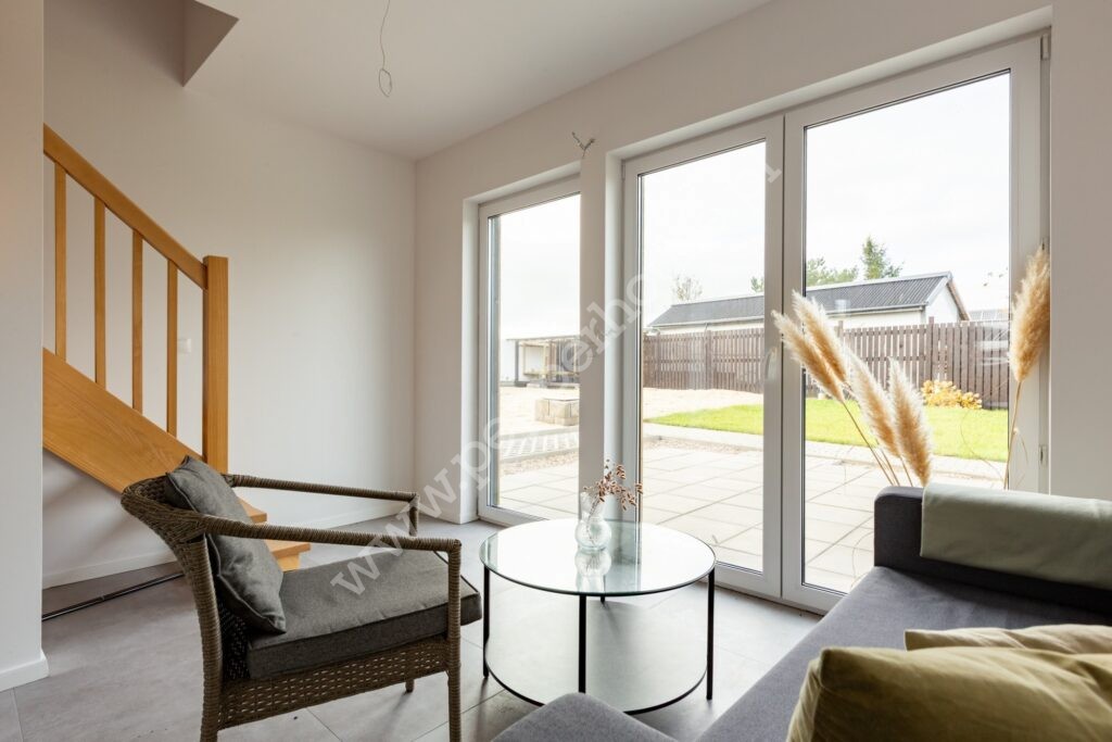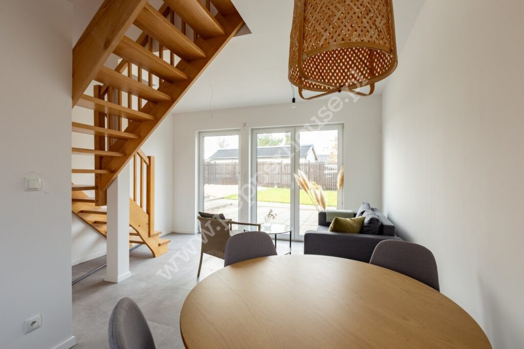 Jeden z domów został w pełni urządzony i wykończony, dzięki czemu możesz wprowadzić się od razu po zakupie. Wnętrze wyróżnia się przytulnym klimatem, funkcjonalnym układem i dużą ilością naturalnego światła.