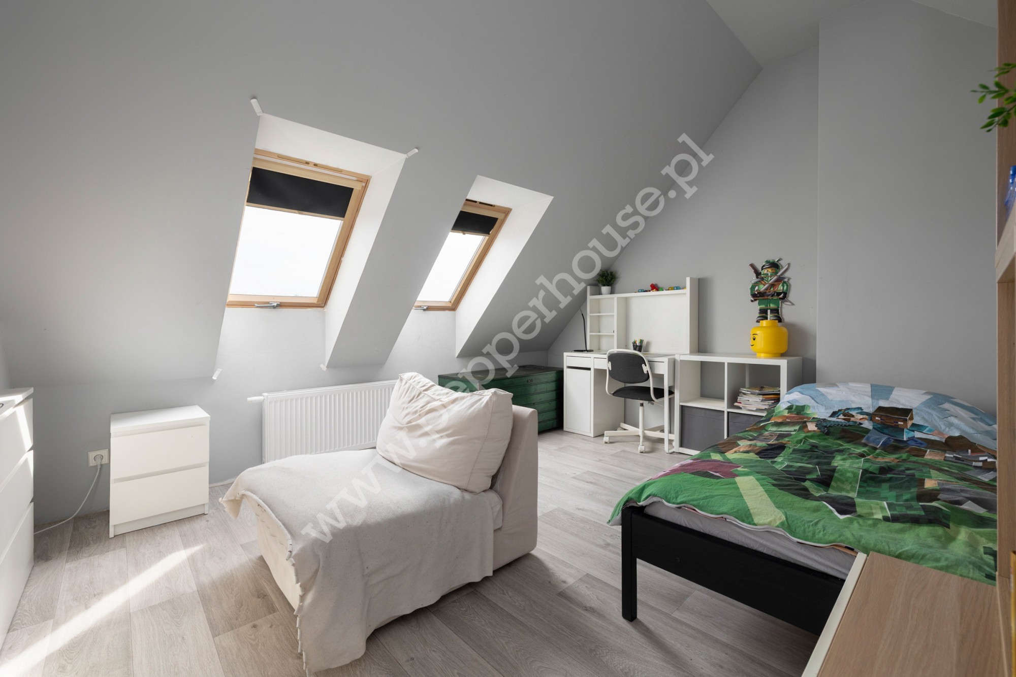 Poddasze: Przestronny, 26-metrowy pokój, który dzięki solidnemu ociepleniu jest komfortową przestrzenią mieszkalną przez cały rok.