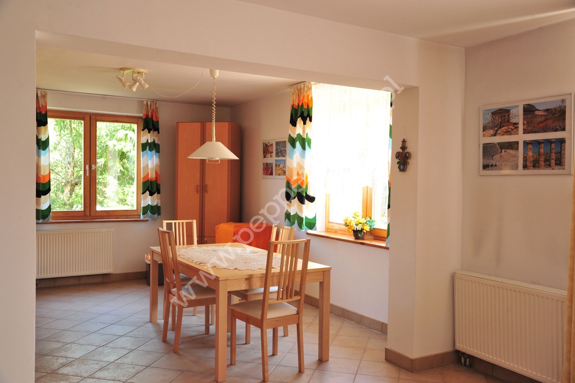 Sam dom posiada okna drewniane z szybami zespolonymi, we wszystkich pomieszczeniach na ścianach położona gładź, pastelowe kolory kafli, w pokojach jasne panele.
