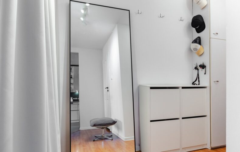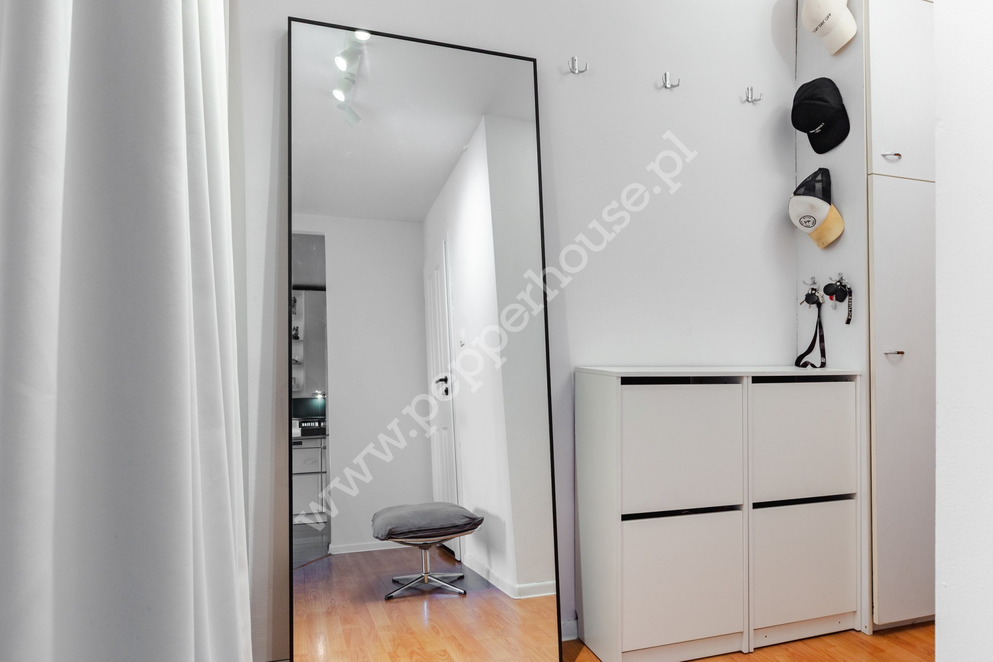 - stylowe meble pozostają w mieszkaniu (skórzana rogówka, szafa PAX, stolik Westwing)