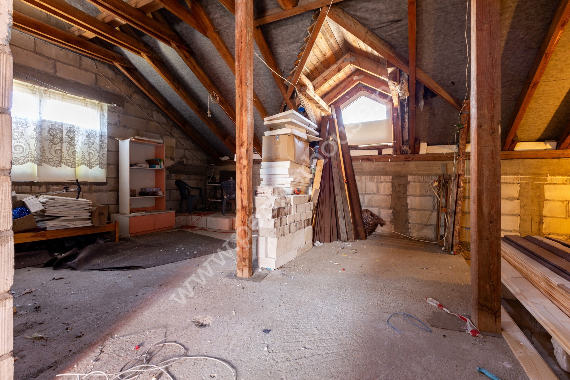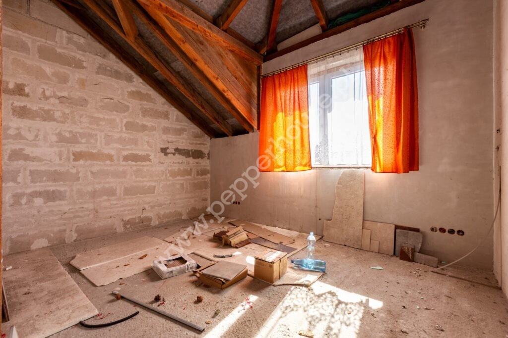 - Komunikacja (14,11 m²) – szeroki korytarz zapewniający wygodny dostęp do wszystkich pokoi na poddaszu.