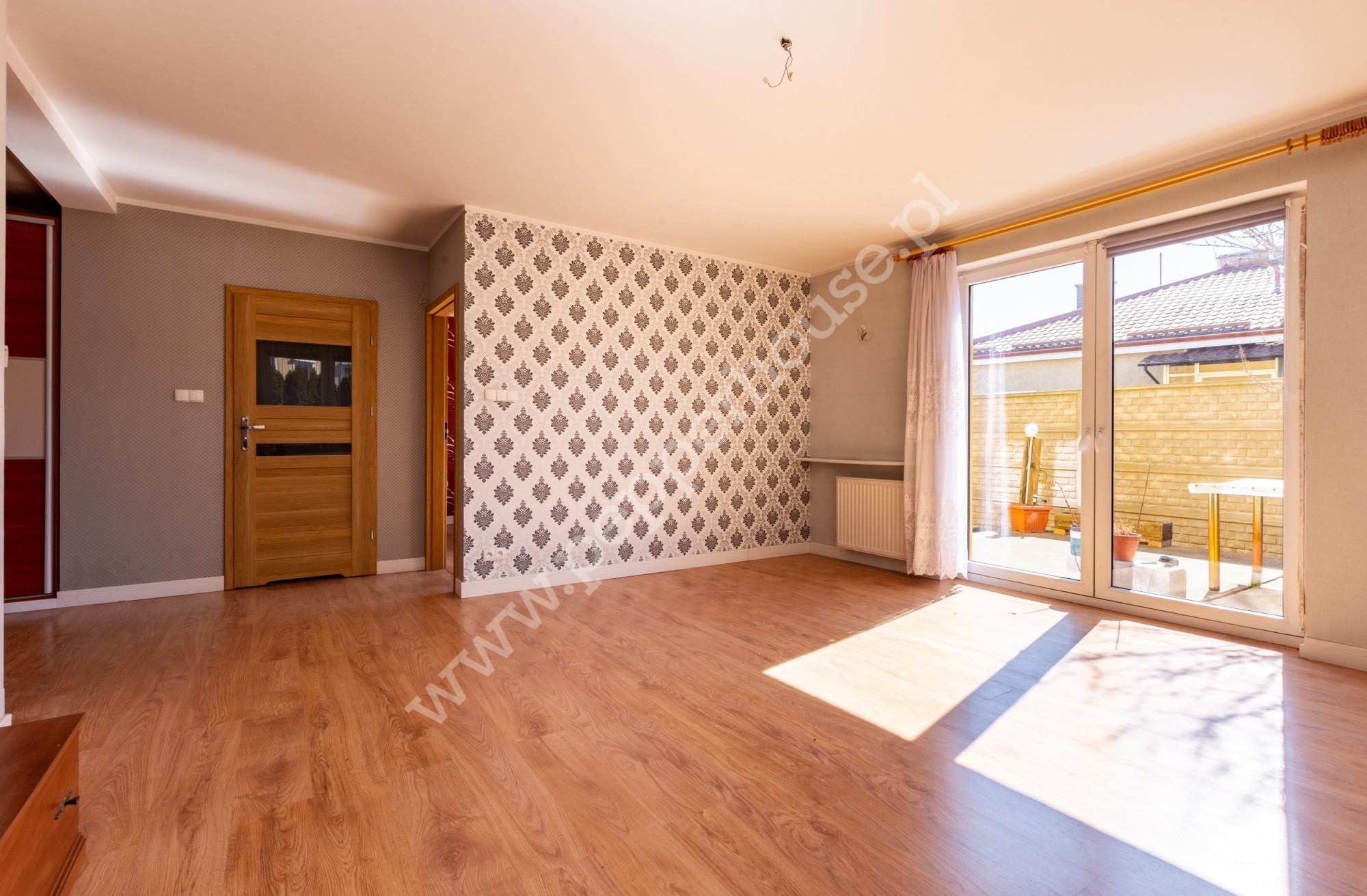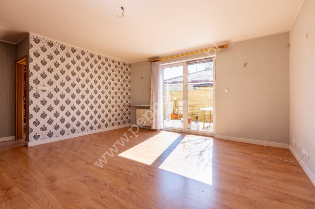 - Wyjście na taras z salonu – doskonałe miejsce na poranną kawę lub letnie wieczory na świeżym powietrzu.