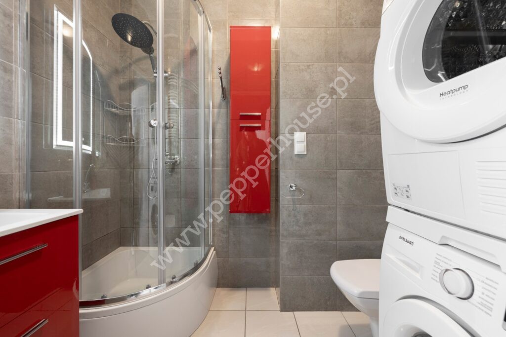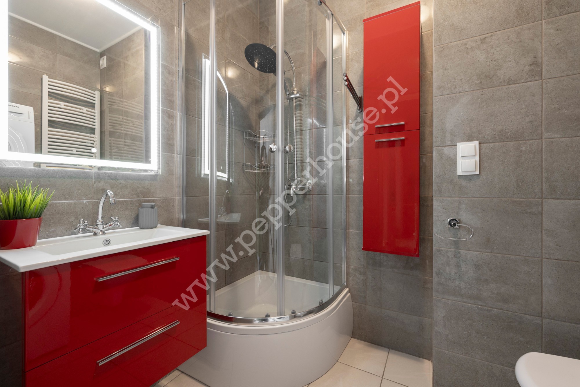 Kuchnia została wyposażona w wysokiej klasy sprzęt AGD oraz funkcjonalną zabudowę meblarską, która zapewnia dużą ilość miejsca do przechowywania. Salon został wyraźnie podzielony na część wypoczynkową i jadalnianą, co znacząco podnosi komfort codziennego użytkowania.