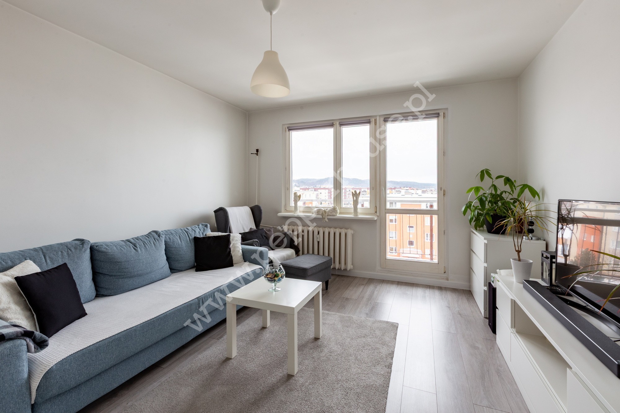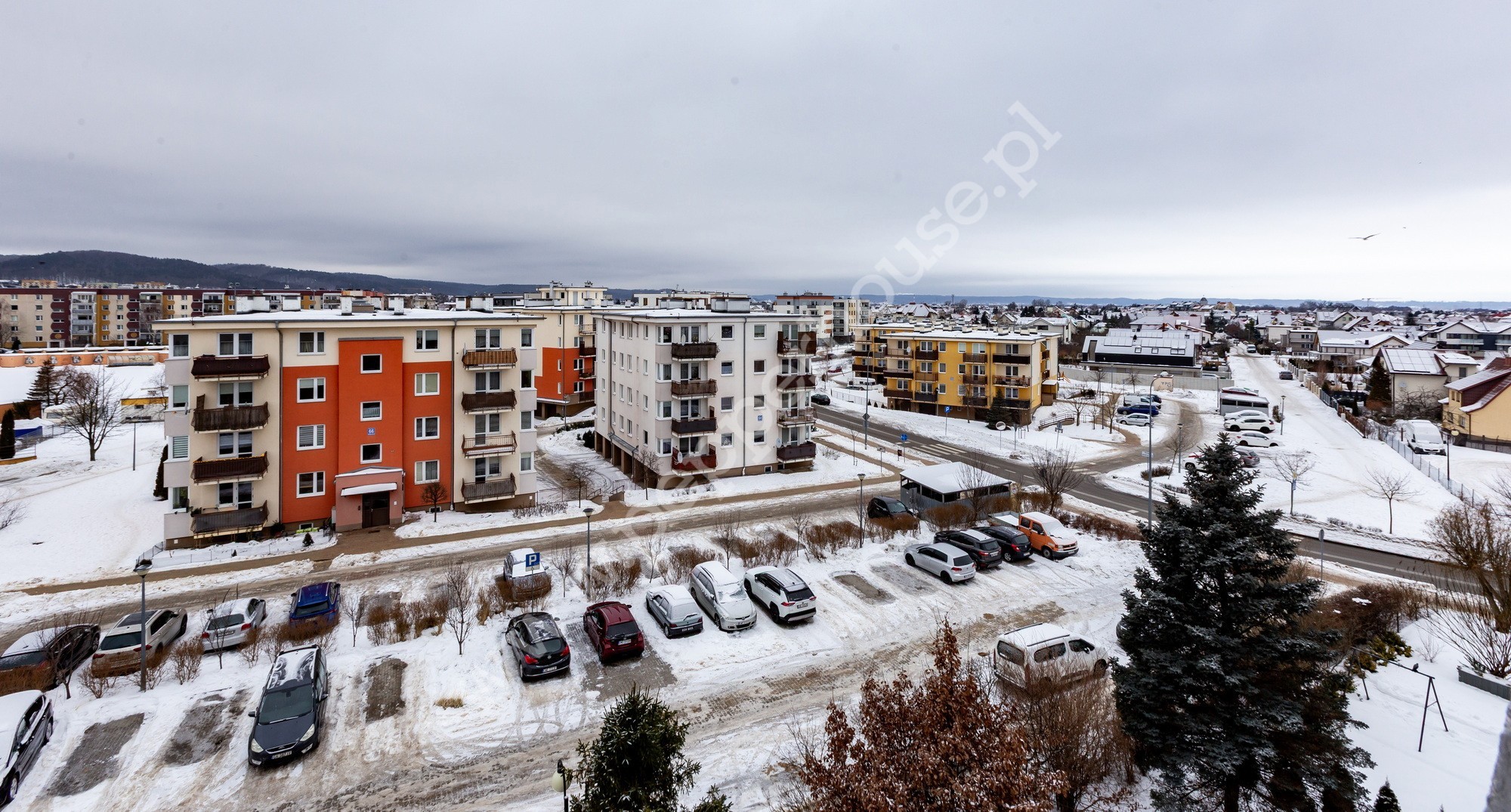 Dzięki ekspozycji wschód-zachód mieszkanie jest dobrze doświetlone przez cały dzień. Z balkonu rozpościera się widok na Górę Markowca oraz okoliczną zabudowę.