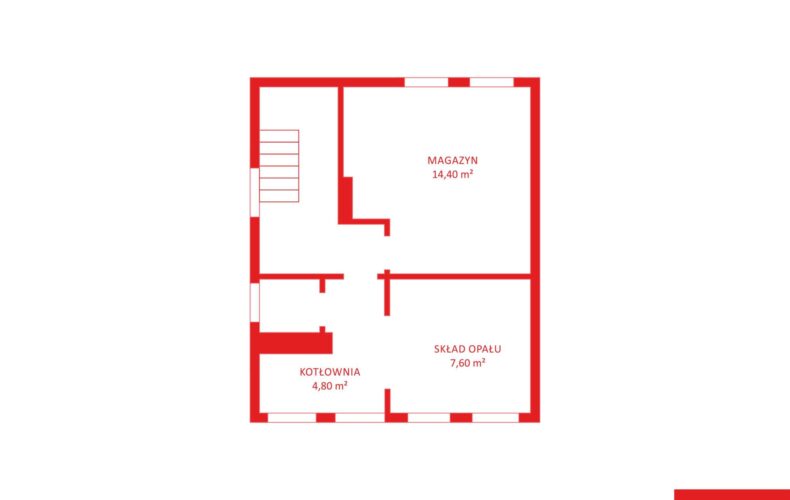 Dach: dwuspadowy lub czterospadowy o nachyleniu 40-45°, kalenica równoległa do drogi.