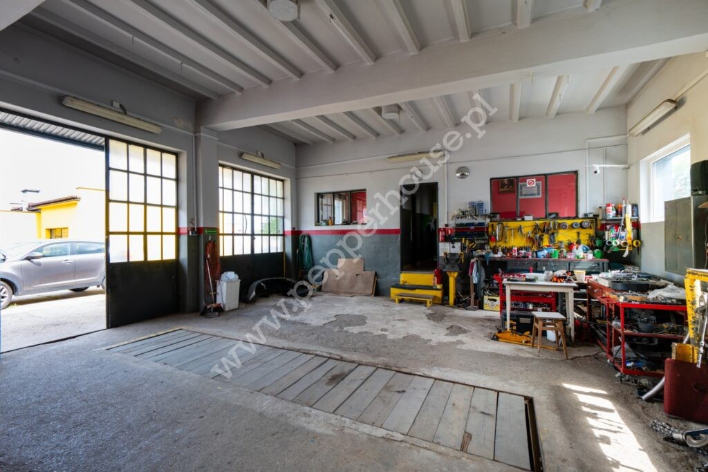 Na terenie działki znajduje się w pełni funkcjonujący, trzystanowiskowy warsztat o powierzchni użytkowej 141 m², wyposażony w:
