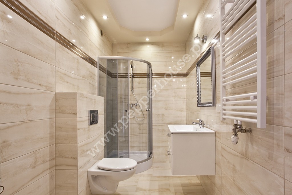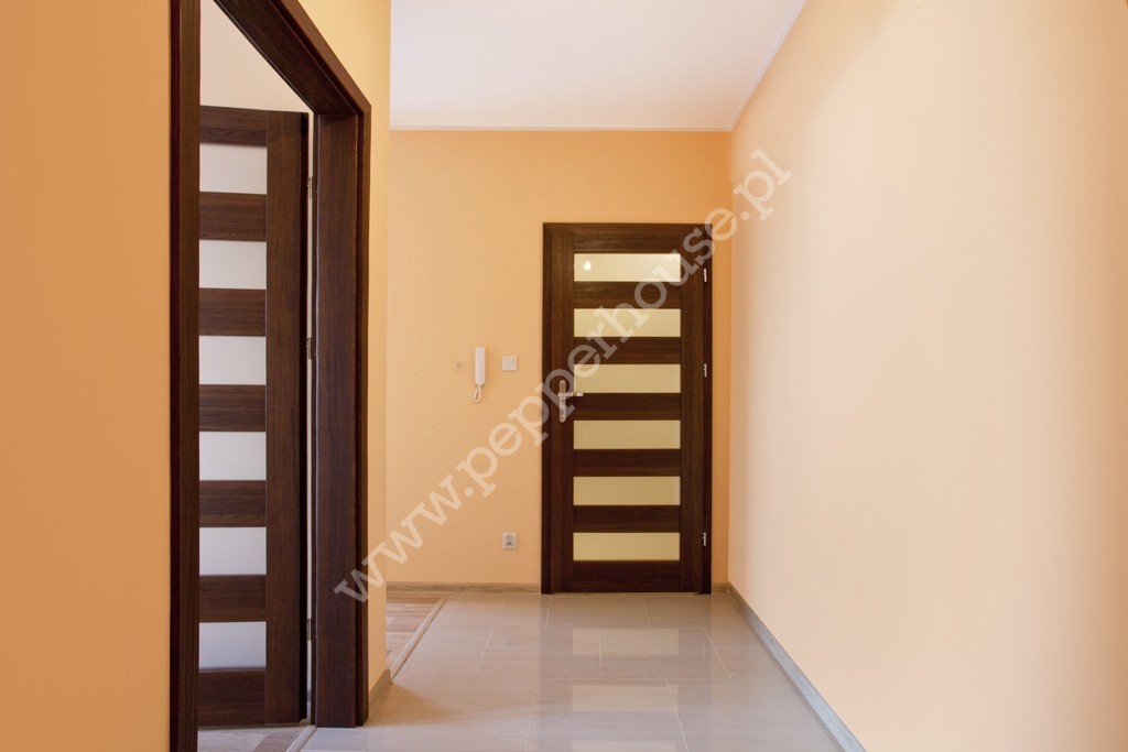 Do załączonych zdjęci w lokalu została zamontowana kuchnia z piekarnikiem i płytą grzewczą, na przedpokoju szafa typu komandor. Dodatkowo w salonie jest kanapa + stół. Łazienka już wyposażona w pralkę, do kuchni została dokupiona lodówka.