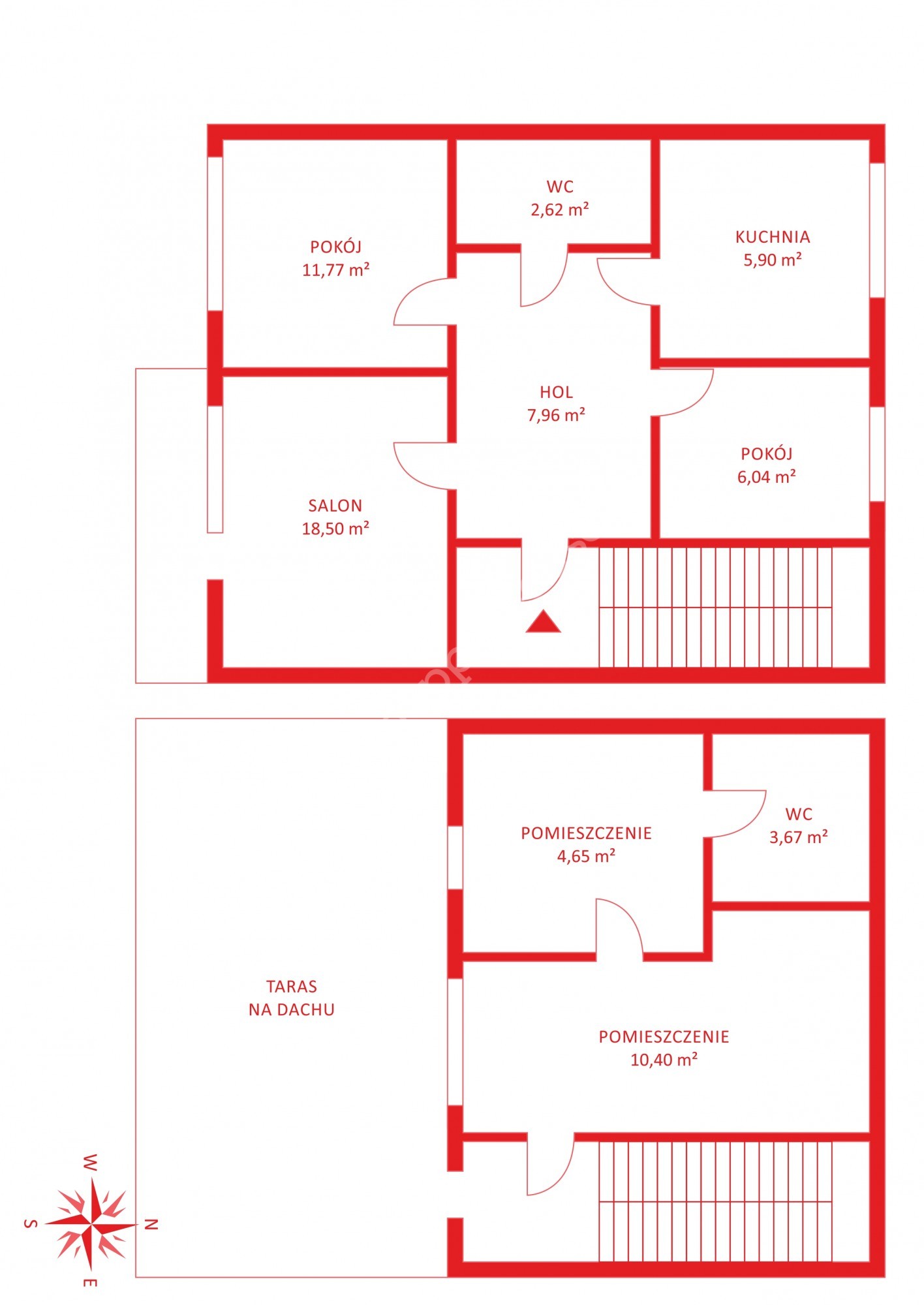 Możliwość zaaranżowania na poddaszu małej kawalerki z pokojem kuchnia i łazienką (łącznie ok 18m2) oraz tarasem o powierzchni ponad 25m2 od strony południowej co dodatkowo podnosi wartość nieruchomości.