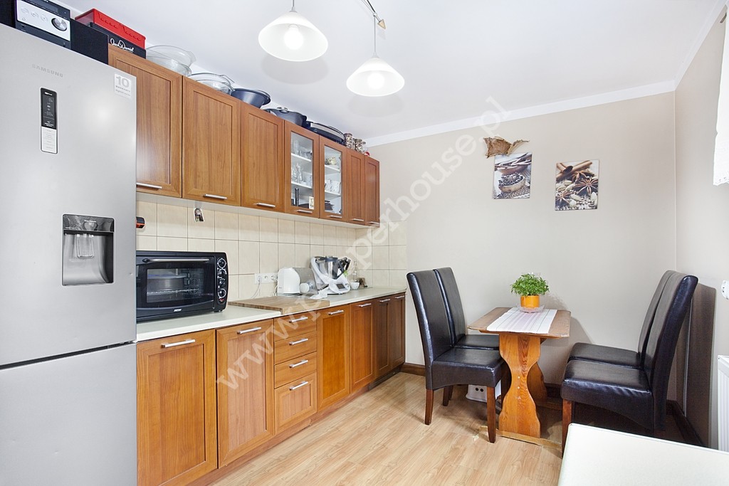 W skład mieszkania wchodzi pokój dzienny (21m2), sypialnia (16,5m2), niezależna przestronna kuchnia (12,2m2) wraz z zabudową, łazienka (3,9m2) oraz przedpokój, z którego jest bezpośrednie wyjście na balkon. Dużym atutem nieruchomości jest to, że 2 lata temu została wymieniona cała elektryka i hydraulika oraz okna na PCV.