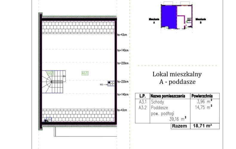Poddasze (pow. podłogi 39,16m² – z możliwością przekształcenia za dodatkową opłatą).