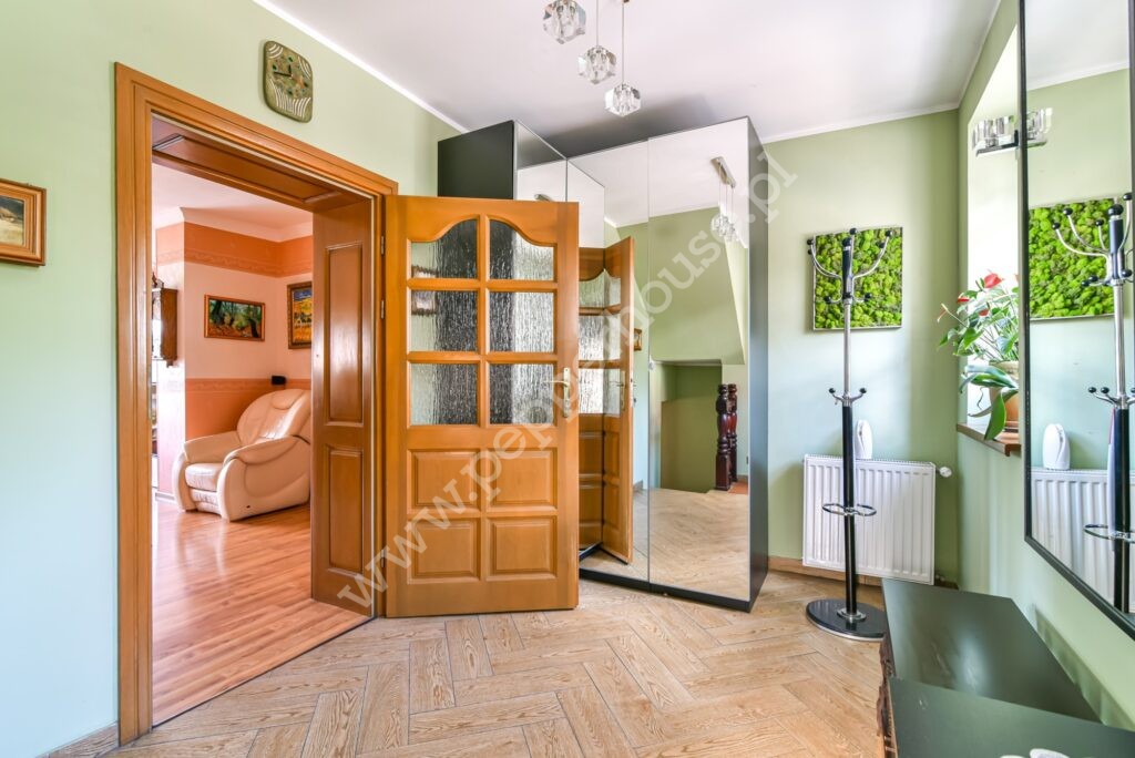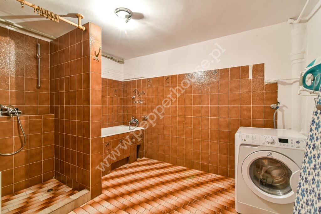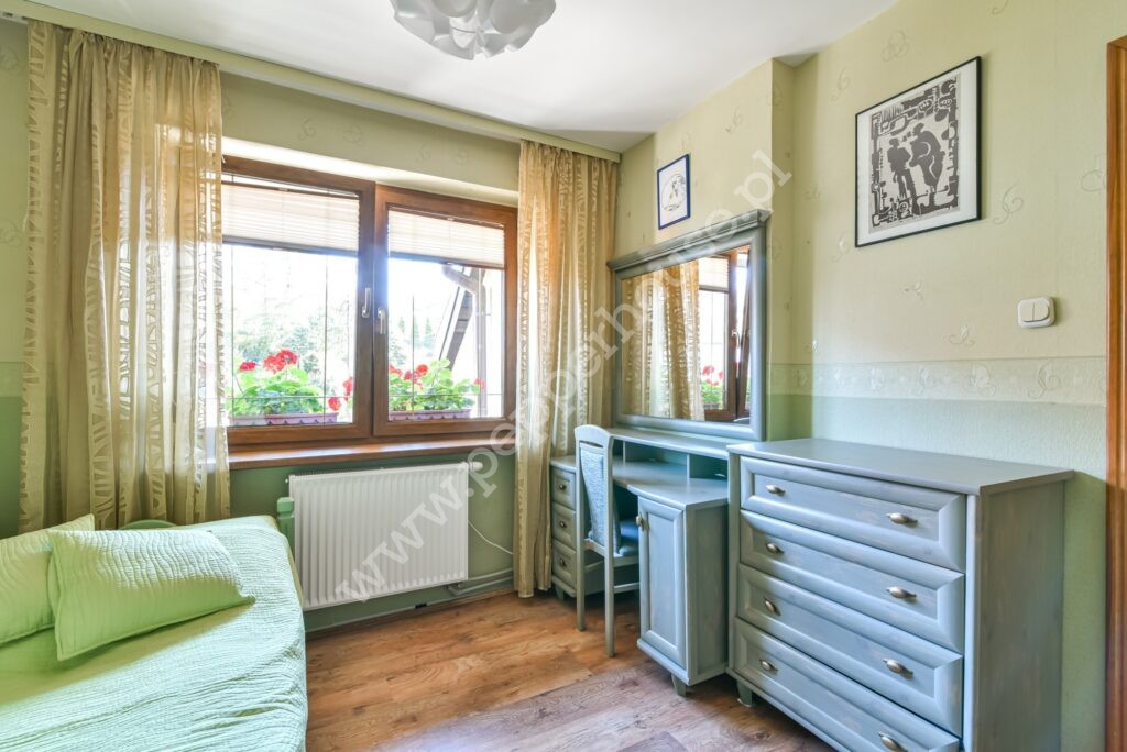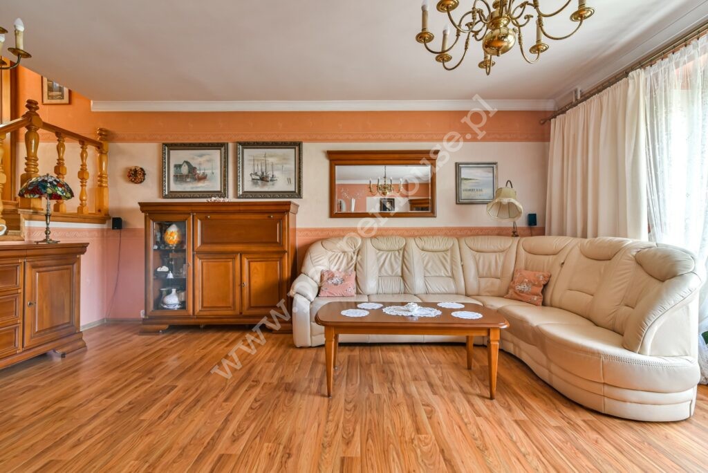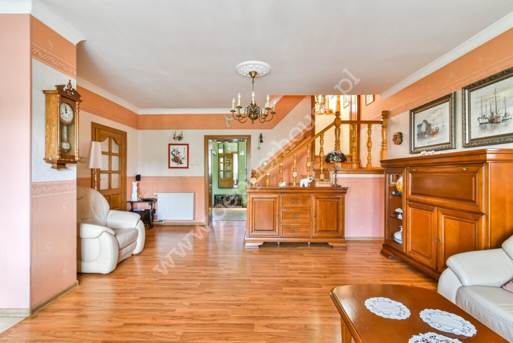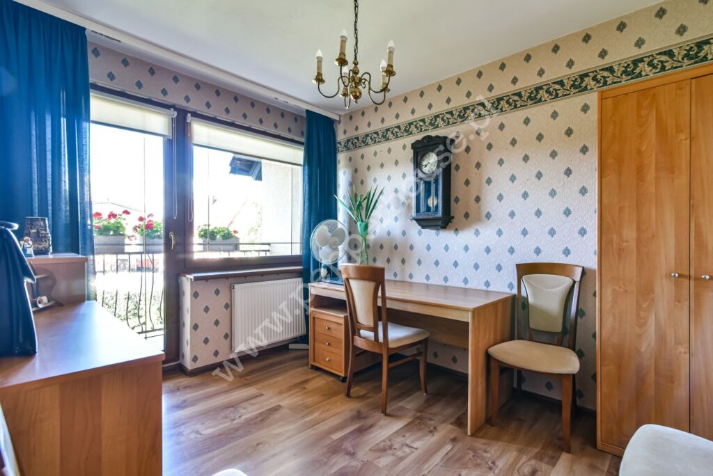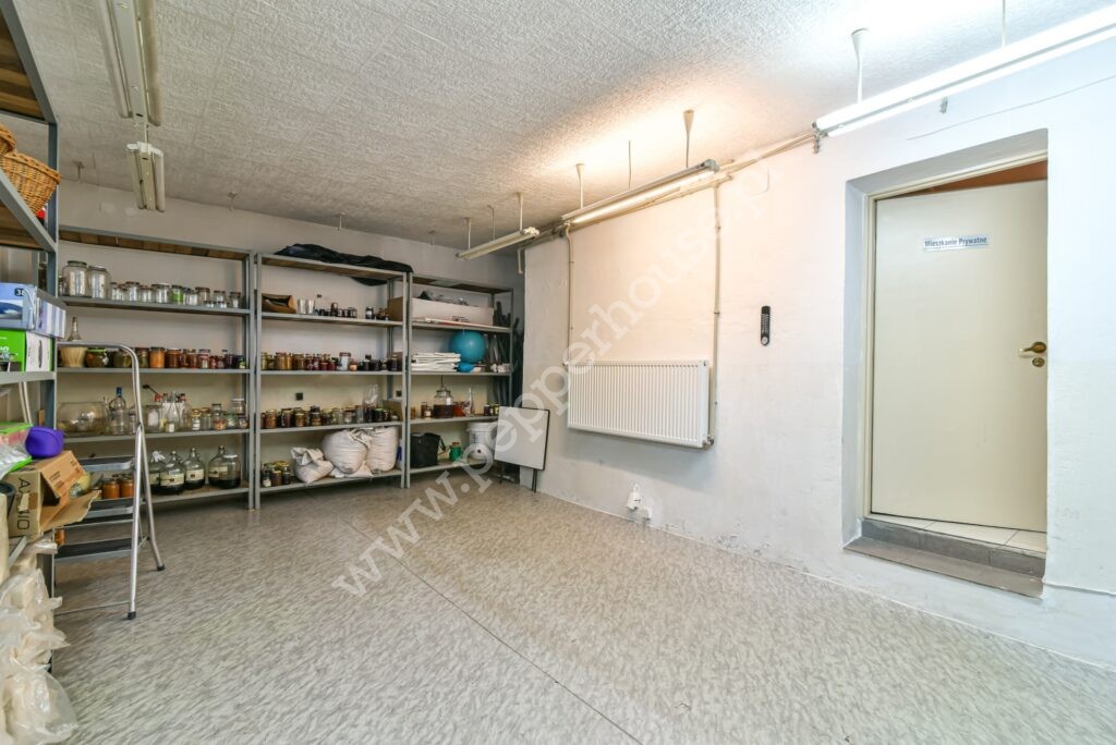Dom w zabudowie bliźniaczej o powierzchni 247m2, 4 kondygnacje, funkcjonalny układ pomieszczeń, ogrzewanie gazowe oraz kominek. Dach ocieplony, blachodachówka. Budynek oddany do użytku w 1981 roku, kanalizacja. Zasobnik ciepłej wody wymieniony w 2025, wymieniona została także cała stolarka okienna. Dom jest w bardzo dobrym stanie technicznym, nie wymaga nakładów finansowych i nadaje się do szybkiego zamieszkania. Doskonale nadaje się dla dużej wielopokoleniowej rodziny, jak i do prowadzenia działalności gospodarczej związanej z archiwizacją dokumentów, księgowością, wysyłką internetową- w przyziemiu budynku o powierzchni użytkowej 90m2 znajdują się pomieszczenia magazynowe, w których tego rodzaju działalności były już prowadzone. Jest tu również pralnia, WC, kotłownia i wyjście do garażu.