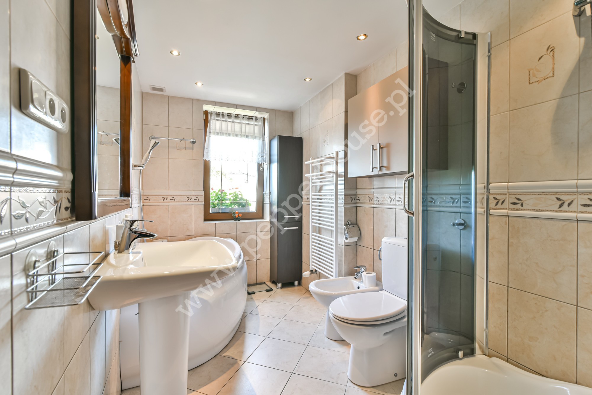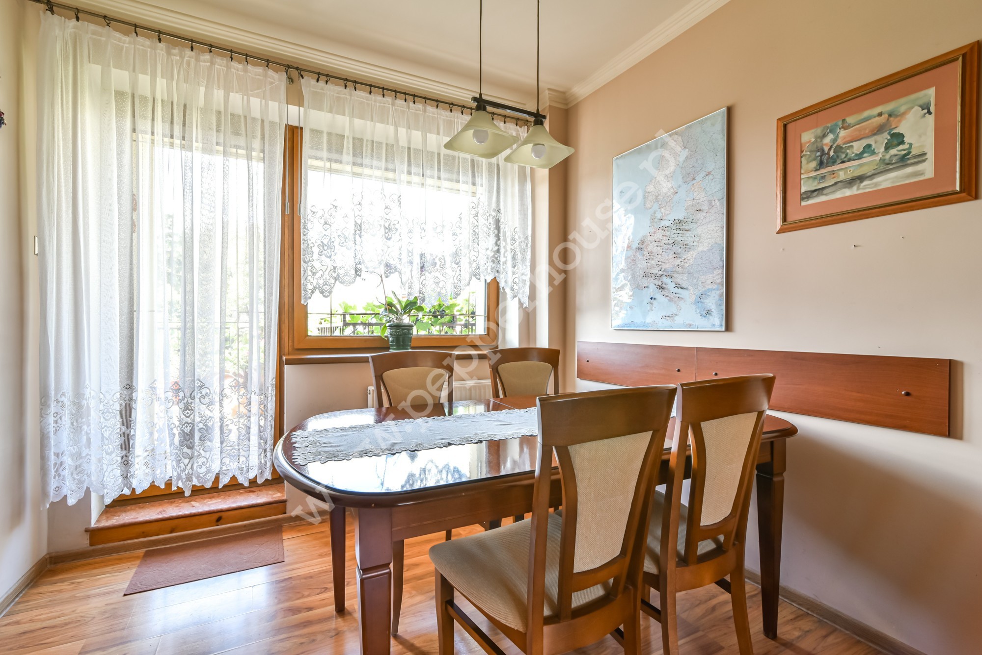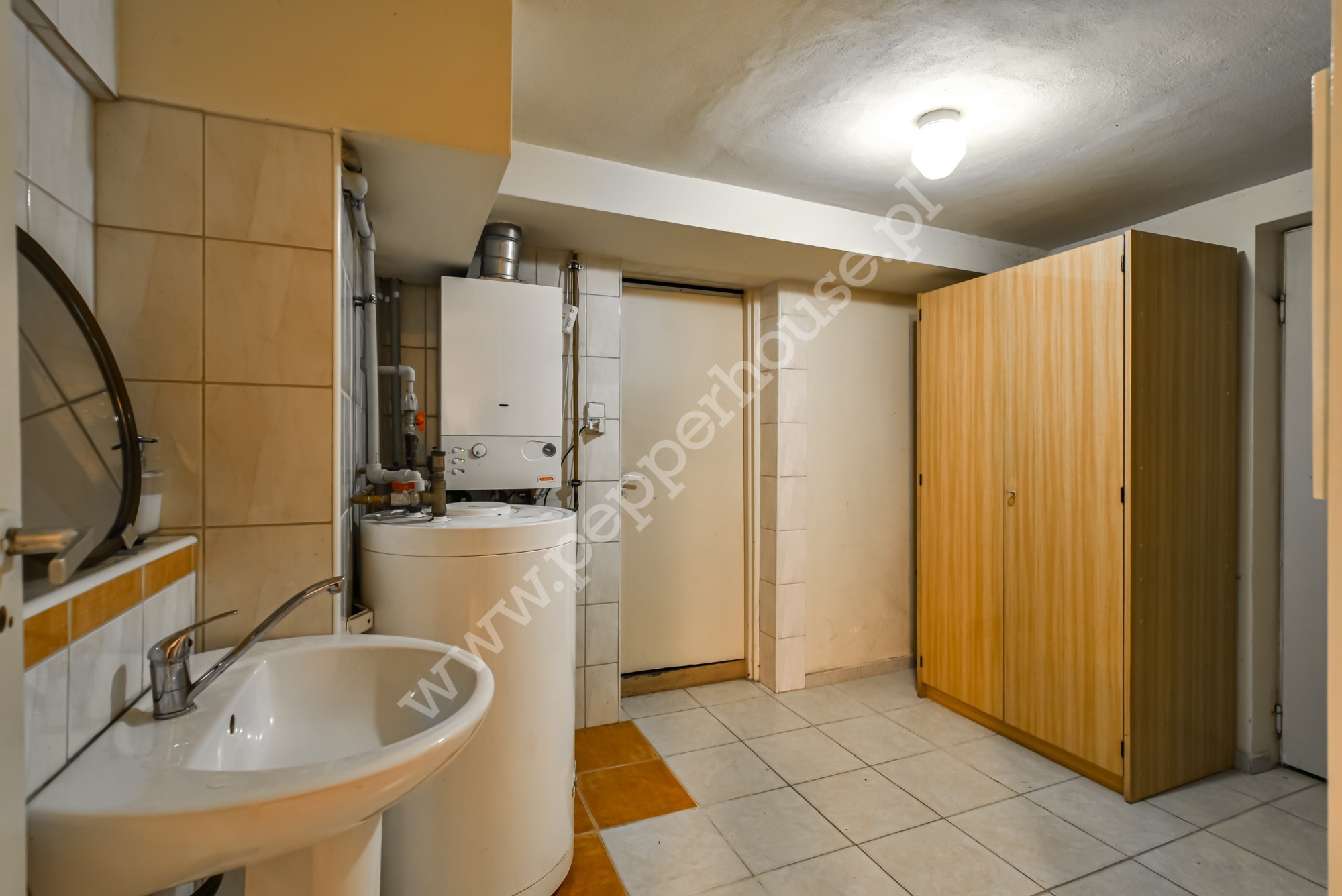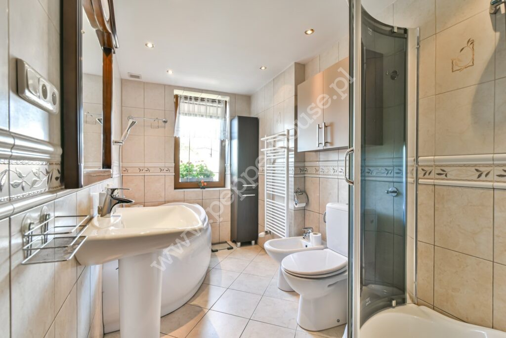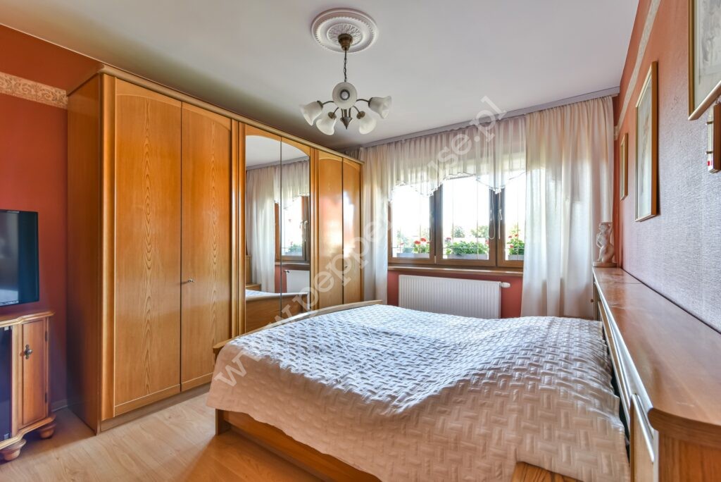 Dom w zabudowie bliźniaczej o powierzchni 247m2, 4 kondygnacje, funkcjonalny układ pomieszczeń, ogrzewanie gazowe oraz kominek. Dach ocieplony, blachodachówka. Budynek oddany do użytku w 1981 roku, kanalizacja. Zasobnik ciepłej wody wymieniony w 2025, wymieniona została także cała stolarka okienna. Dom jest w bardzo dobrym stanie technicznym, nie wymaga nakładów finansowych i nadaje się do szybkiego zamieszkania. Doskonale nadaje się dla dużej wielopokoleniowej rodziny, jak i do prowadzenia działalności gospodarczej związanej z archiwizacją dokumentów, księgowością, wysyłką internetową- w przyziemiu budynku o powierzchni użytkowej 90m2 znajdują się pomieszczenia magazynowe, w których tego rodzaju działalności były już prowadzone. Jest tu również pralnia, WC, kotłownia i wyjście do garażu.