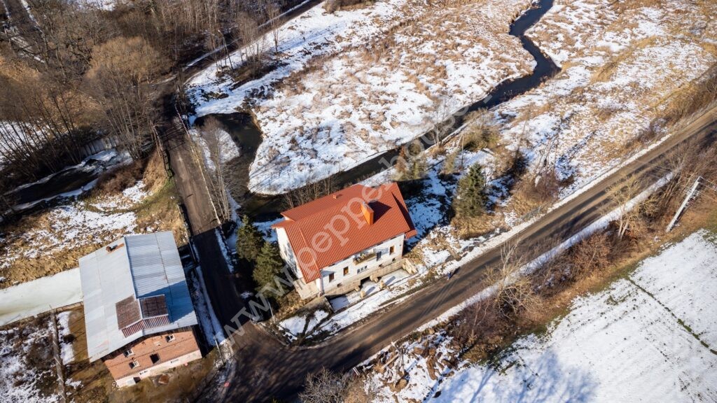 Nieruchomość o powierzchni ponad 420m2 zbudowana w latach 80′. Wykonana z pustaków, pokryta czerwoną dachówką ceramiczną. Budynek posiada własne ogrzewanie na węgiel. Doprowadzona woda oraz podciągnięta kanalizacja. Dodatkowo na terenie działki znajduje się szambo.