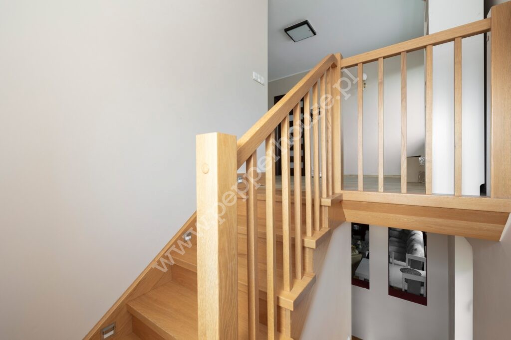 – Estetyczne i trwałe wykończenie wnętrz – dębowe schody, podłoga drewniana na parterze, panele na poddaszu.