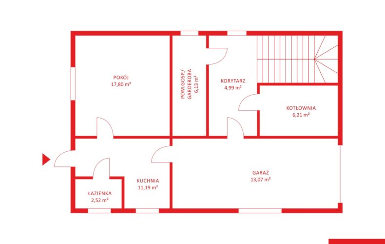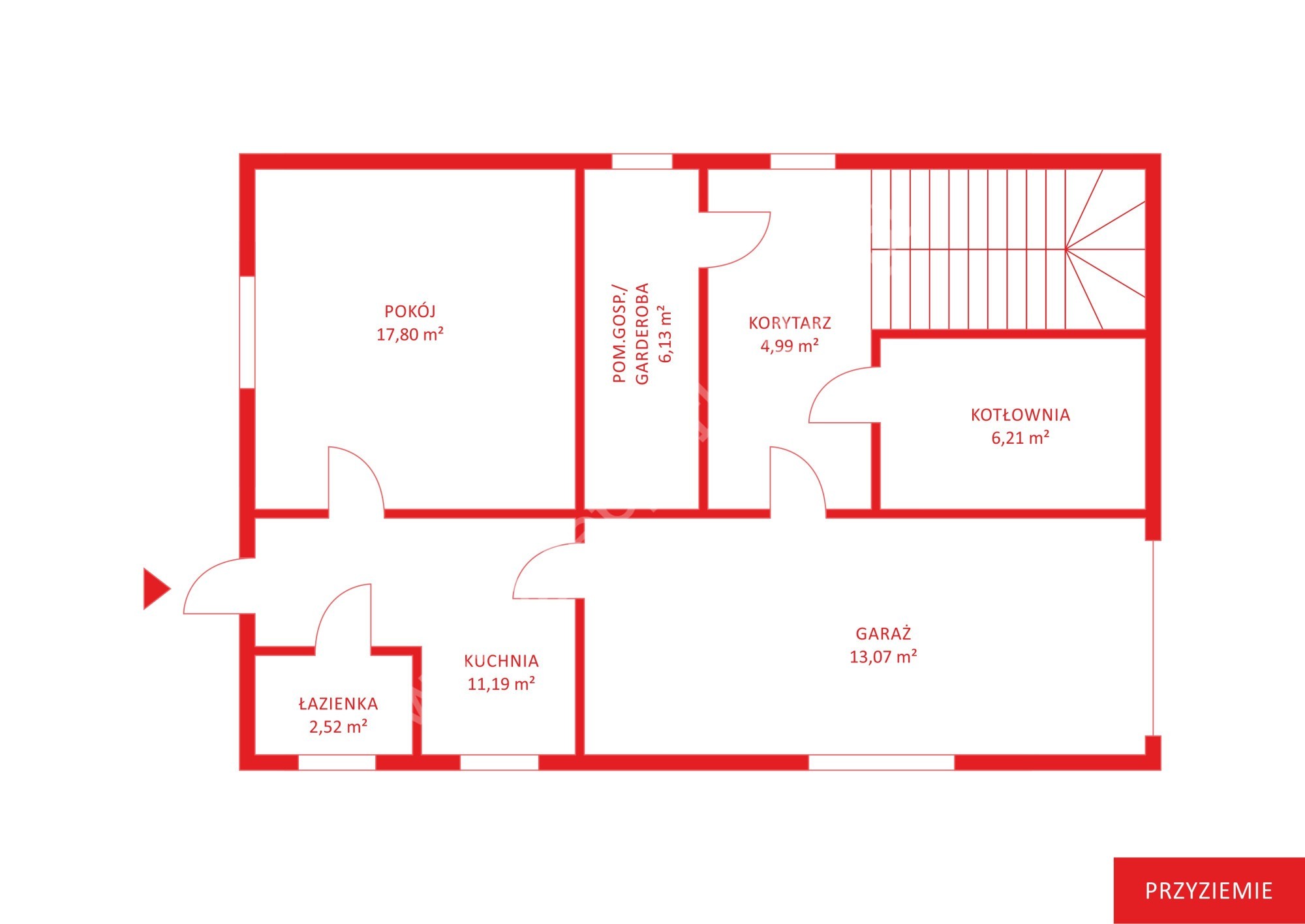 I. Przyziemia: garaż, garderoba, pomieszczenia gospodarcze oraz niezależne mieszkanie (około 30 m2) z osobnym wejściem – może służyć jako lokal na wynajem lub biuro/działalność gospodarczą.