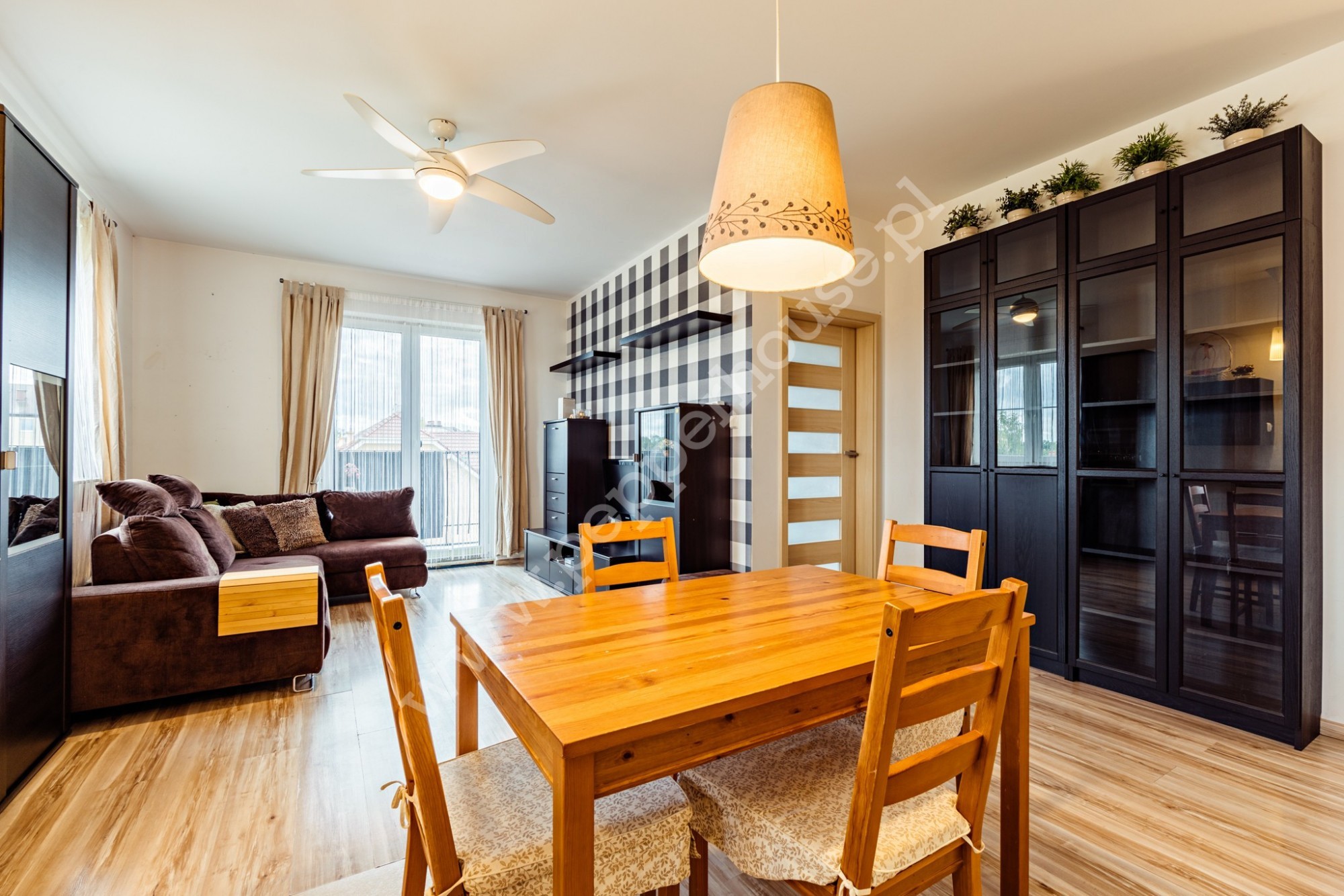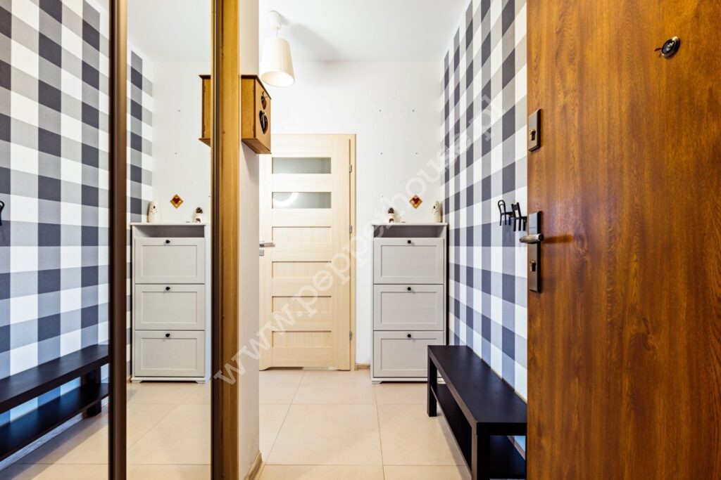 Nieruchomość położona jest na I piętrze budynku z 2012 roku i składa się ze słonecznego, przestrzennego salonu połączonego z aneksem kuchennym , dwóch sypialni oraz łazienki z WC. Charakteru nieruchomości dodają niebanalne dodatki, takie jak system szaf w zabudowie, meble w cenie wynajmu.