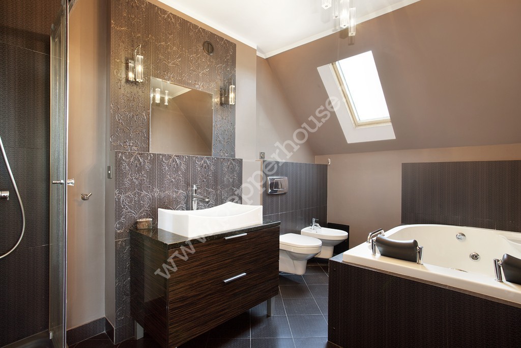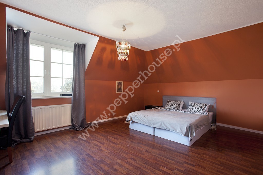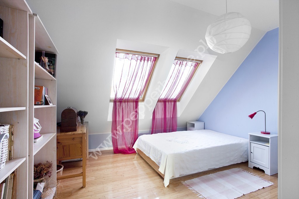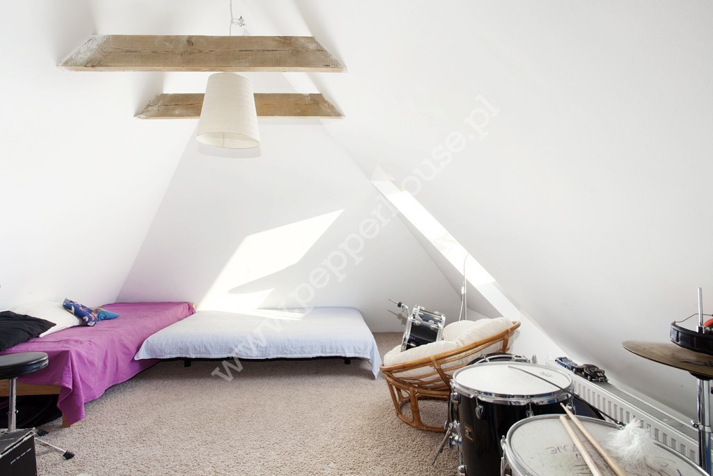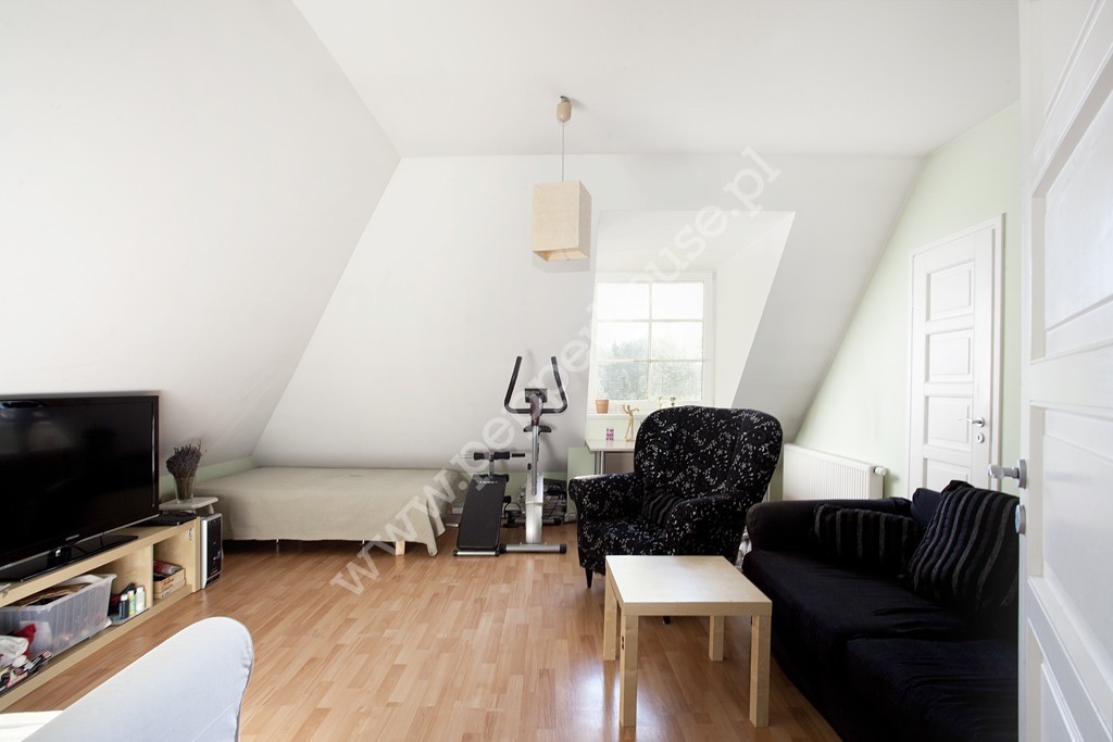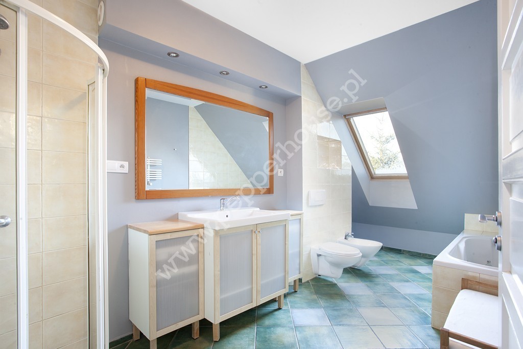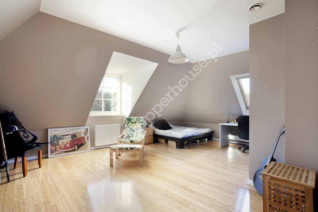 Na poddaszu są 4 jasne i ustawne pokoje (10,5m2, 16.6m2, 1m2 i 28,2m2), 2 garderoby (2,3m2 i 2m2) i 2 łazienki (8,5m2 i 8,6m2).