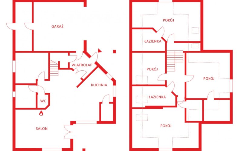 Dom o powierzchni 245,5 m2 składa się z dwóch kondygnacji. Na dole znajduje się przestronny salon z kominkiem (34m2), jadalnia (12,9m2), otwarta kuchnia (8,4m2) ze spiżarnią (3,1m2), pomieszczenie gospodarcze(6,6m2), WC (1,9m2), gabinet (3,7m2) i pokój (35m2).