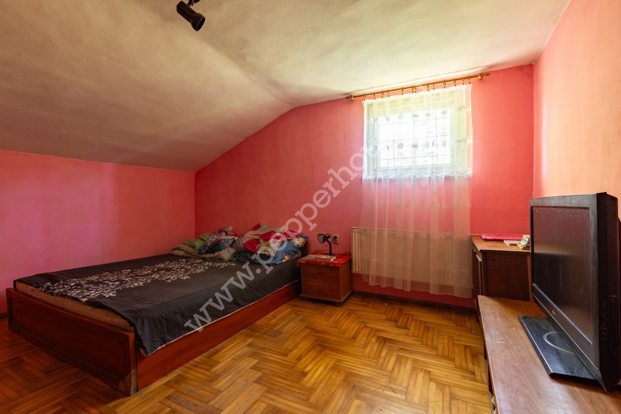 Na parterze znajduje się łazienka, salon, kuchnia i jadalnia, które tworzą jednolitą przestrzeń. Na piętrze znajdują się cztery pokoje oraz toaleta.
