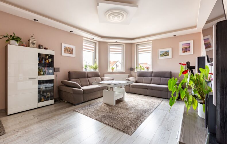 – Imponujący, przestronny i jasny salon z wyjściem na balkon typu loggia