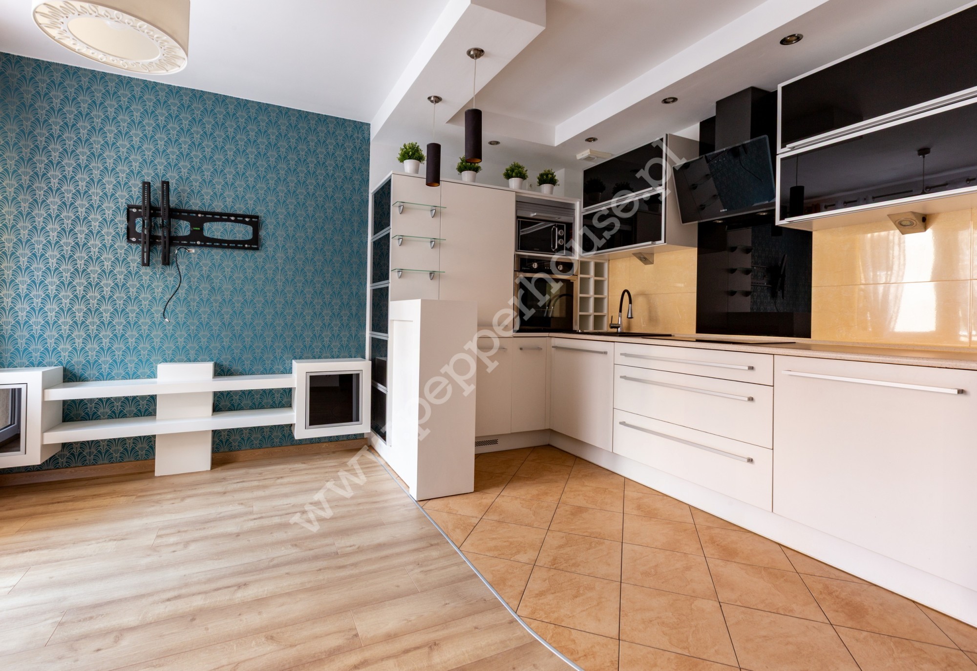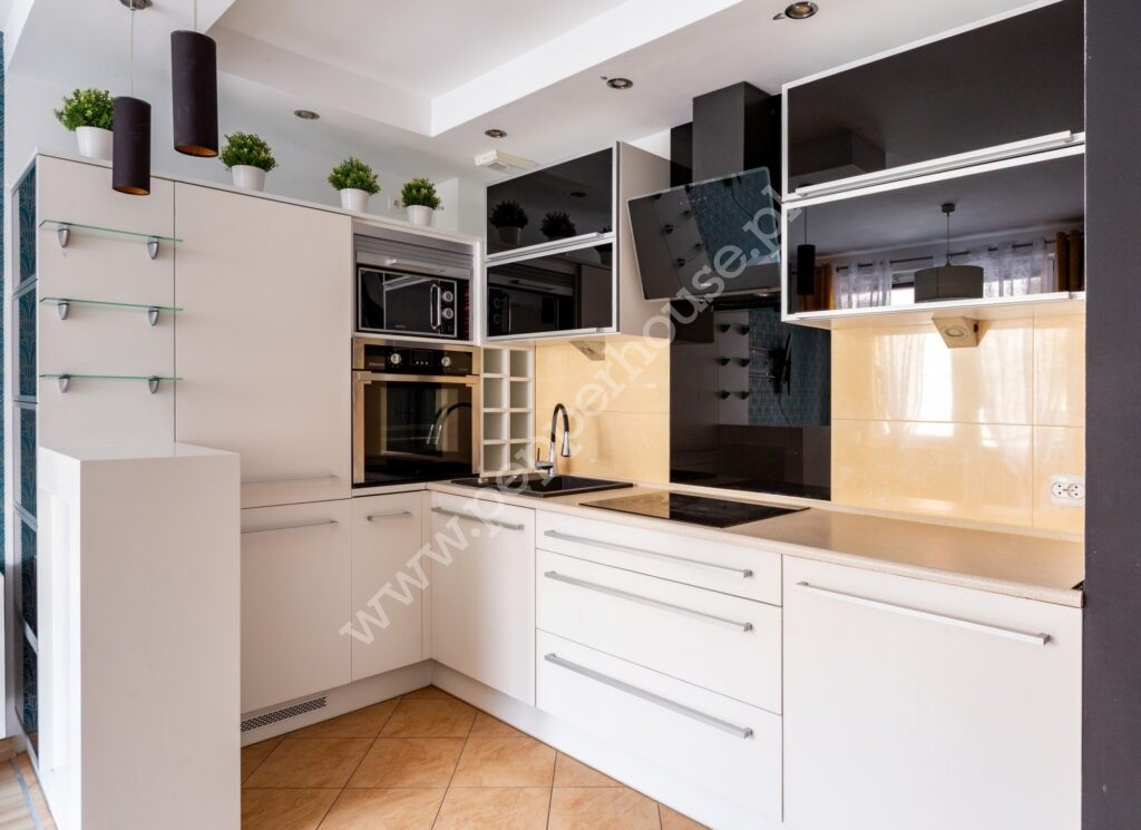 Mieszkanie w pełni wyposażone w meble wykonane na specjalne zamówienie oraz pełna zabudowa kuchenna wraz z AGD