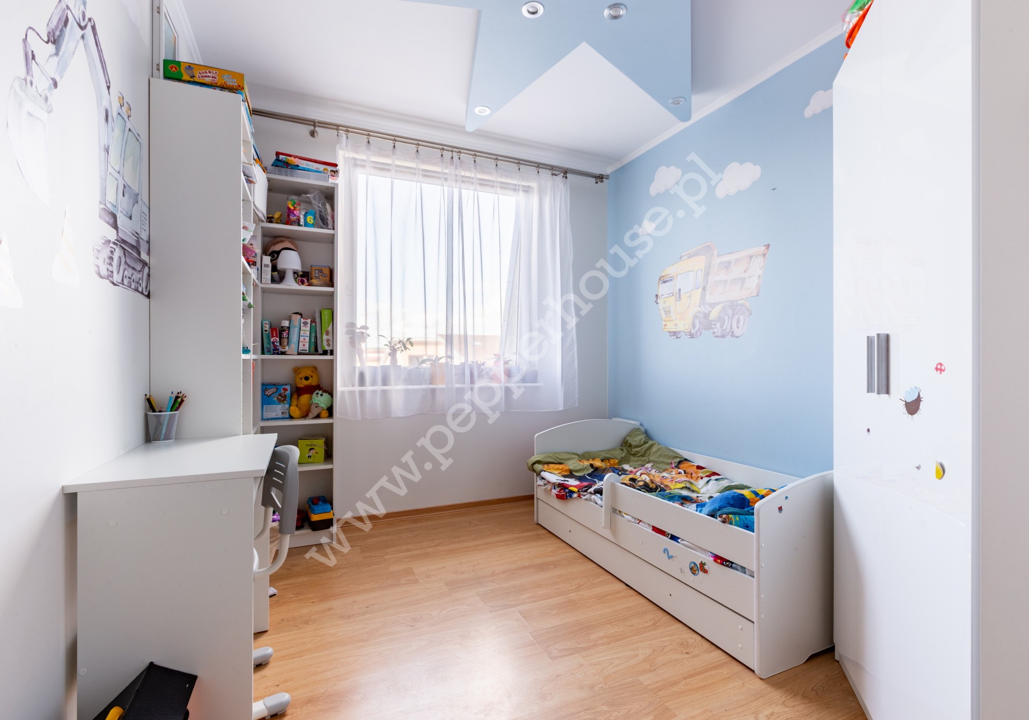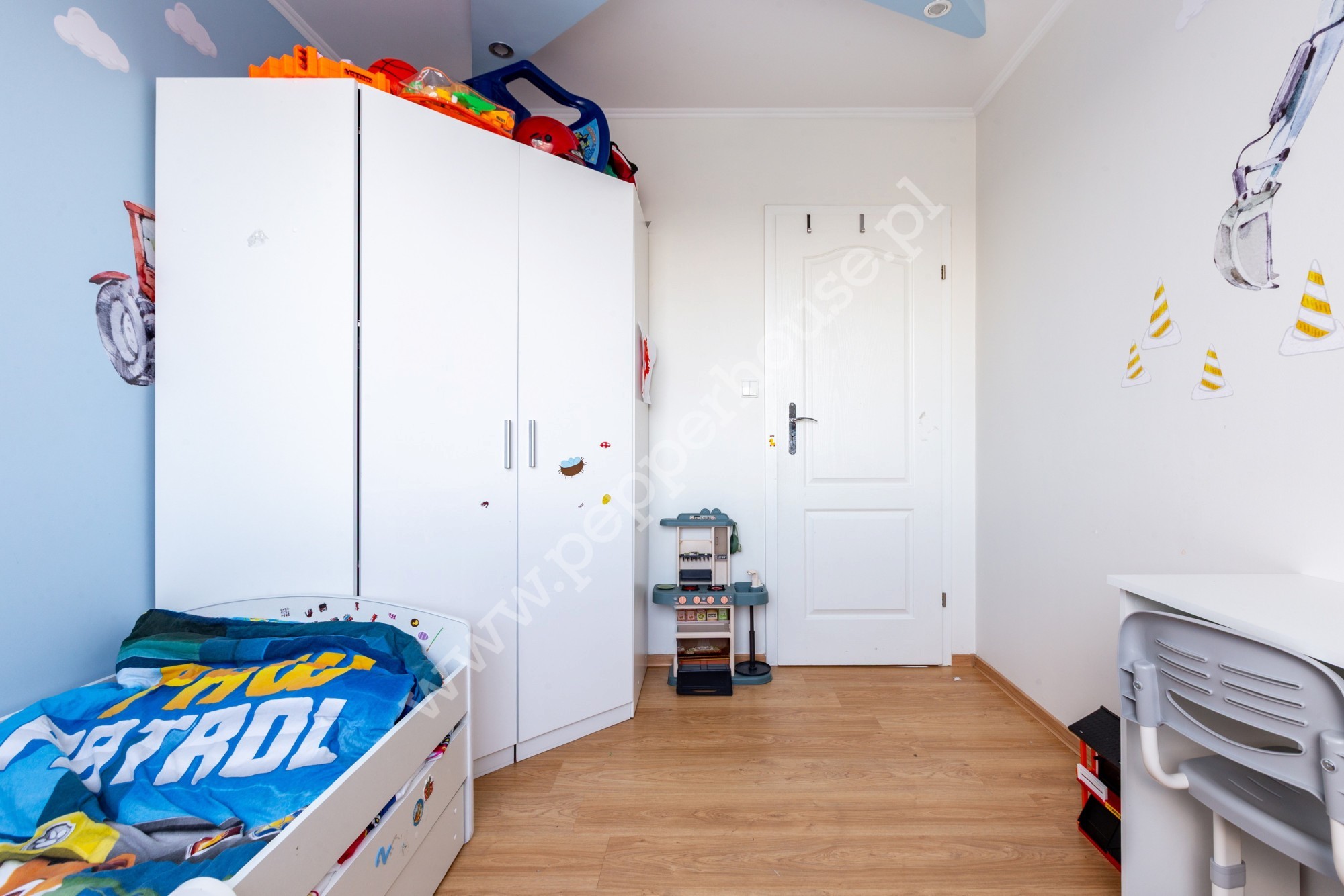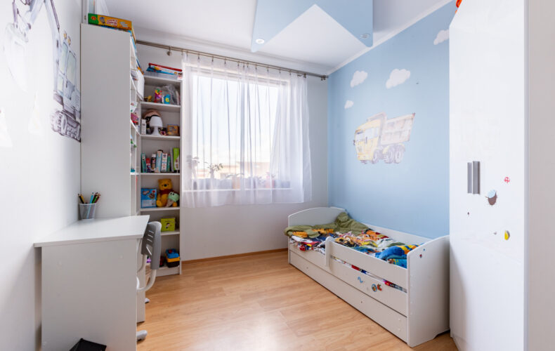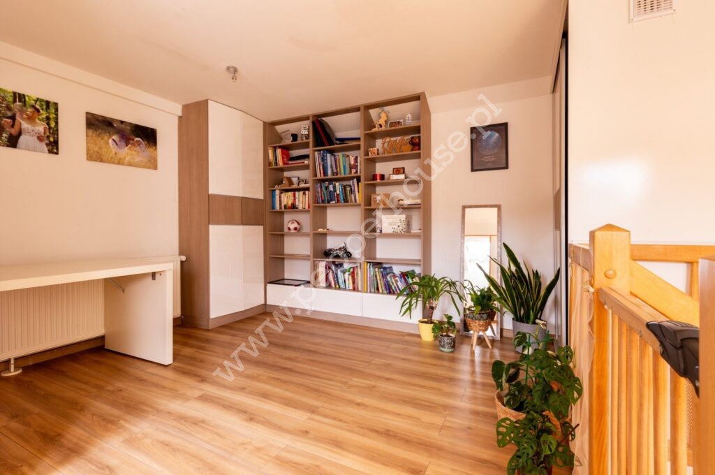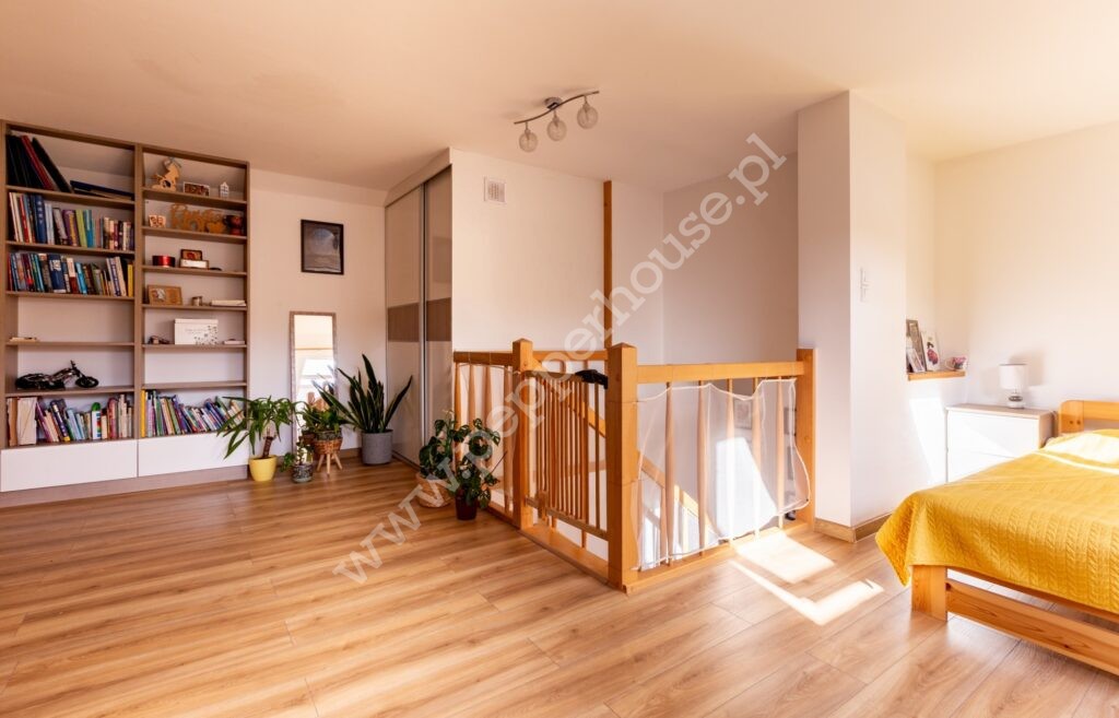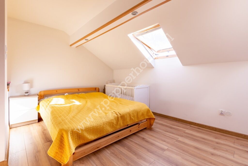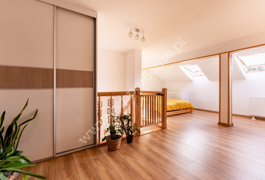 Pierwszy poziom mieszkania składa się z kuchni, salonu, pokoju dziecięcego z możliwością przearanżowania, przedpokoju, łazienki i pomieszczenia gospodarczego. Dodatkowo na poddaszu znajduje się sypialnia, z wydzielonym miejscem na garderobę i WC.