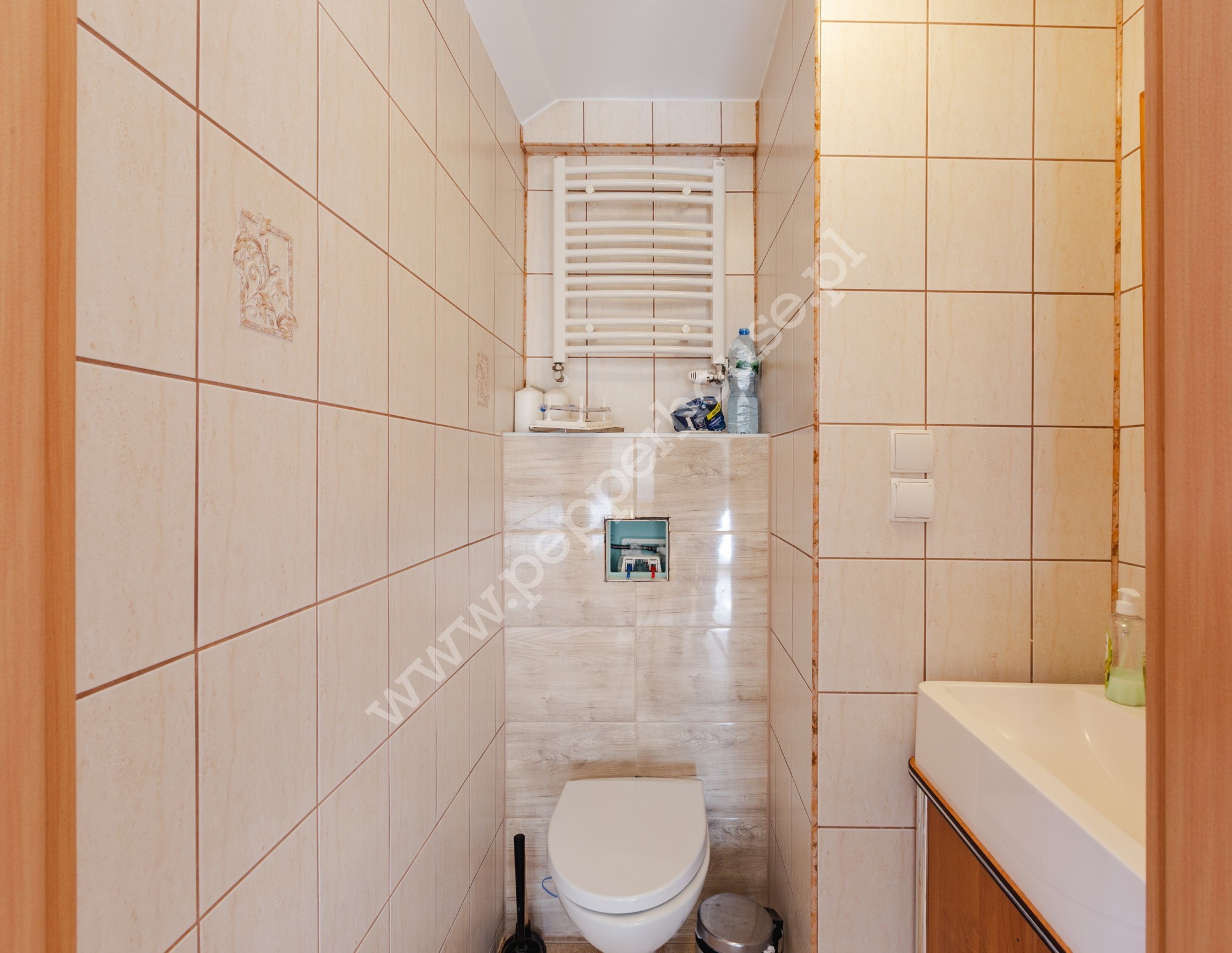 - Ogrzewanie – piec gazowy (kotłownia na cały budynek), boiler ogrzewa wodę.