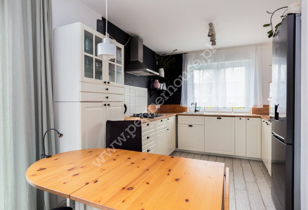 Na malowniczej działce o powierzchni 900 m² znajduje się stylowy dom jednorodzinny o powierzchni 160 m², którego układ idealnie łączy funkcjonalność z komfortem codziennego życia. Na piętrze znajdują się trzy przestronne sypialnie, w tym jedna z prywatną garderobą oraz pomieszczenie gospodarcze z możliwością adaptacji na dodatkową łazienkę. Parter to elegancka przestrzeń dzienna — salon z aneksem kuchennym, osobny pokój, łazienka oraz kotłownia z piecem gazowym.