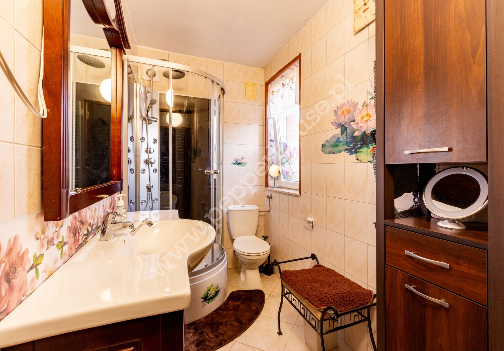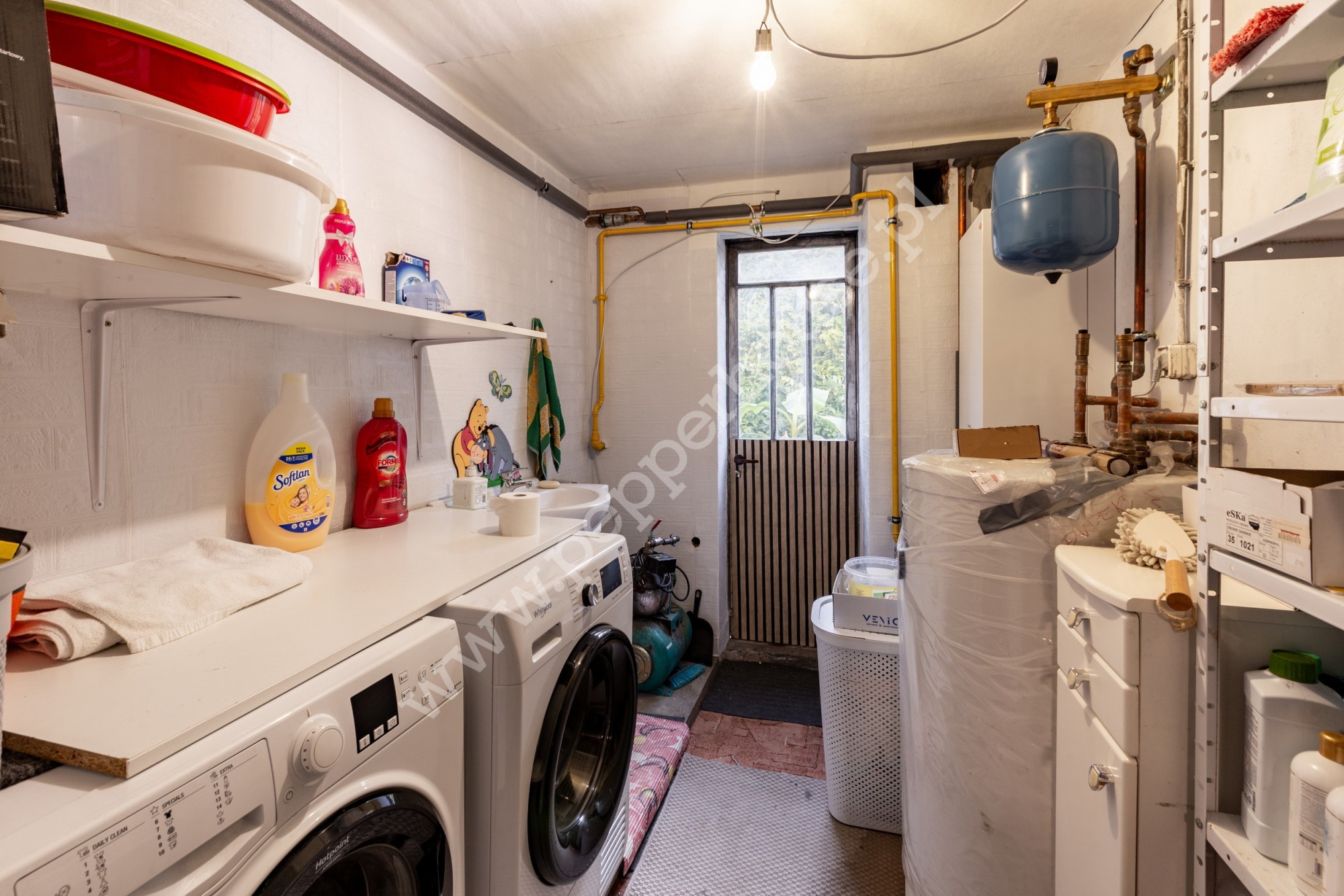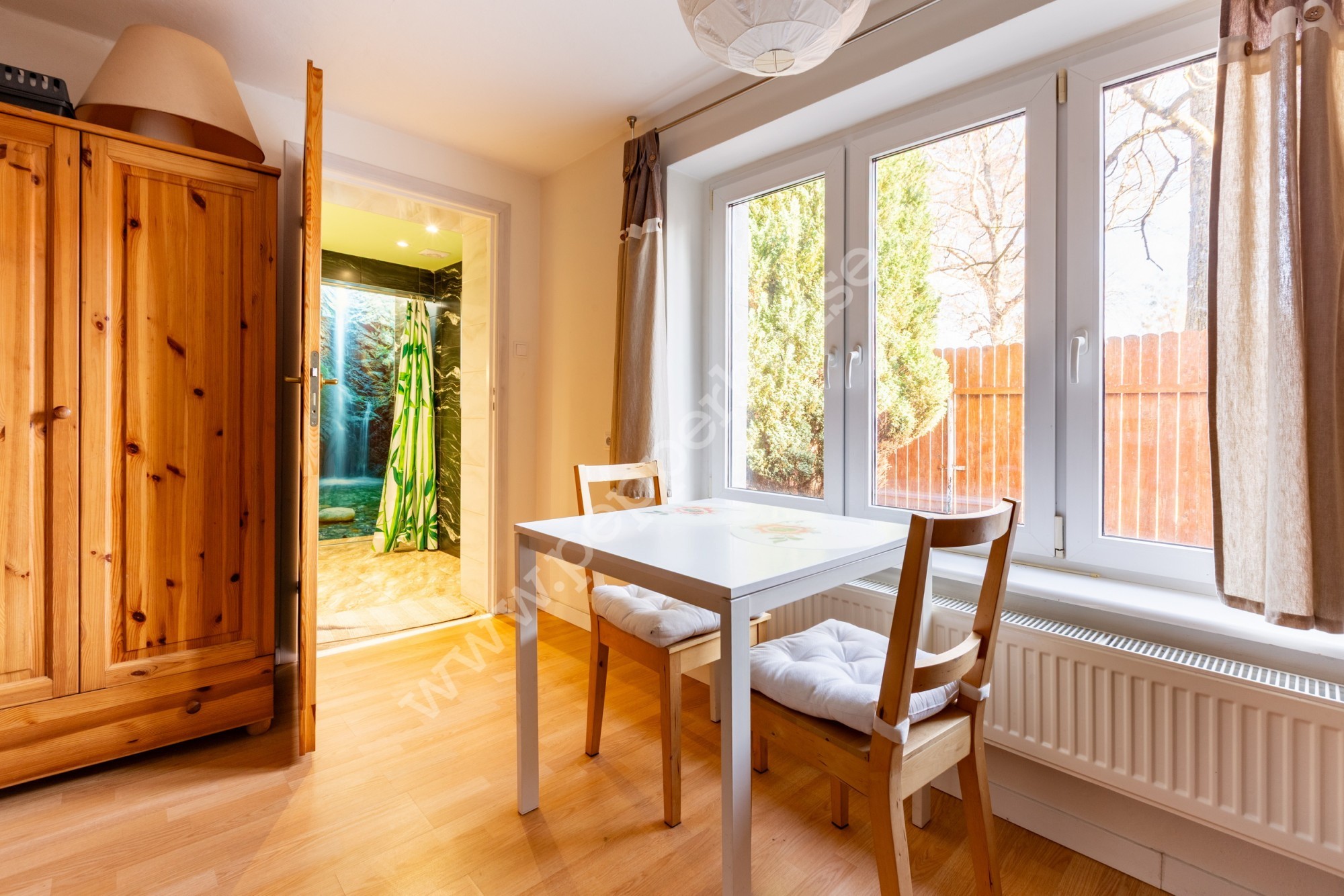 Nieruchomość posiada dwa niezależne wejścia – jedno od frontu z małym tarasem, a drugie gościnne, co gwarantuje komfort i prywatność dla wynajmujących. W części gościnnej znajdują się 2 pokoje z prywatnymi łazienkami, kuchnia oraz przestronna jadalnia, zachęcająca do wspólnych posiłków. Dodatkowym udogodnieniem jest część pralni z piecem gazowym oraz ujęcie wody z pomocą pompy miejskie i własne, co zapewnia niezależność w dostępie do wody.