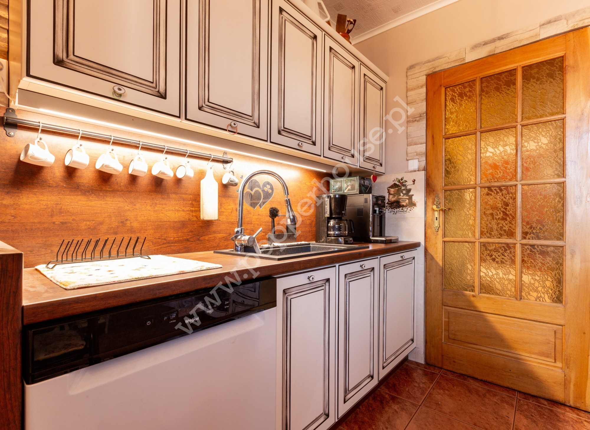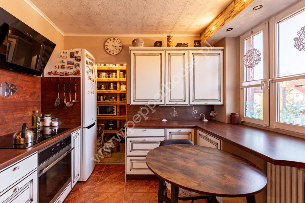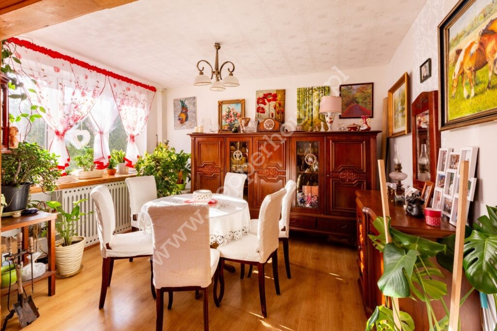 Na I piętrze znajduje się salon z kominkiem, który tworzy przytulną atmosferę idealną do spędzania czasu z rodziną i przyjaciółmi. Kuchnia wraz ze spiżarnią zostały niedawno wyremontowane i wyposażone w nowoczesne fronty. Całości dopełnia bogato urządzona łazienka.
