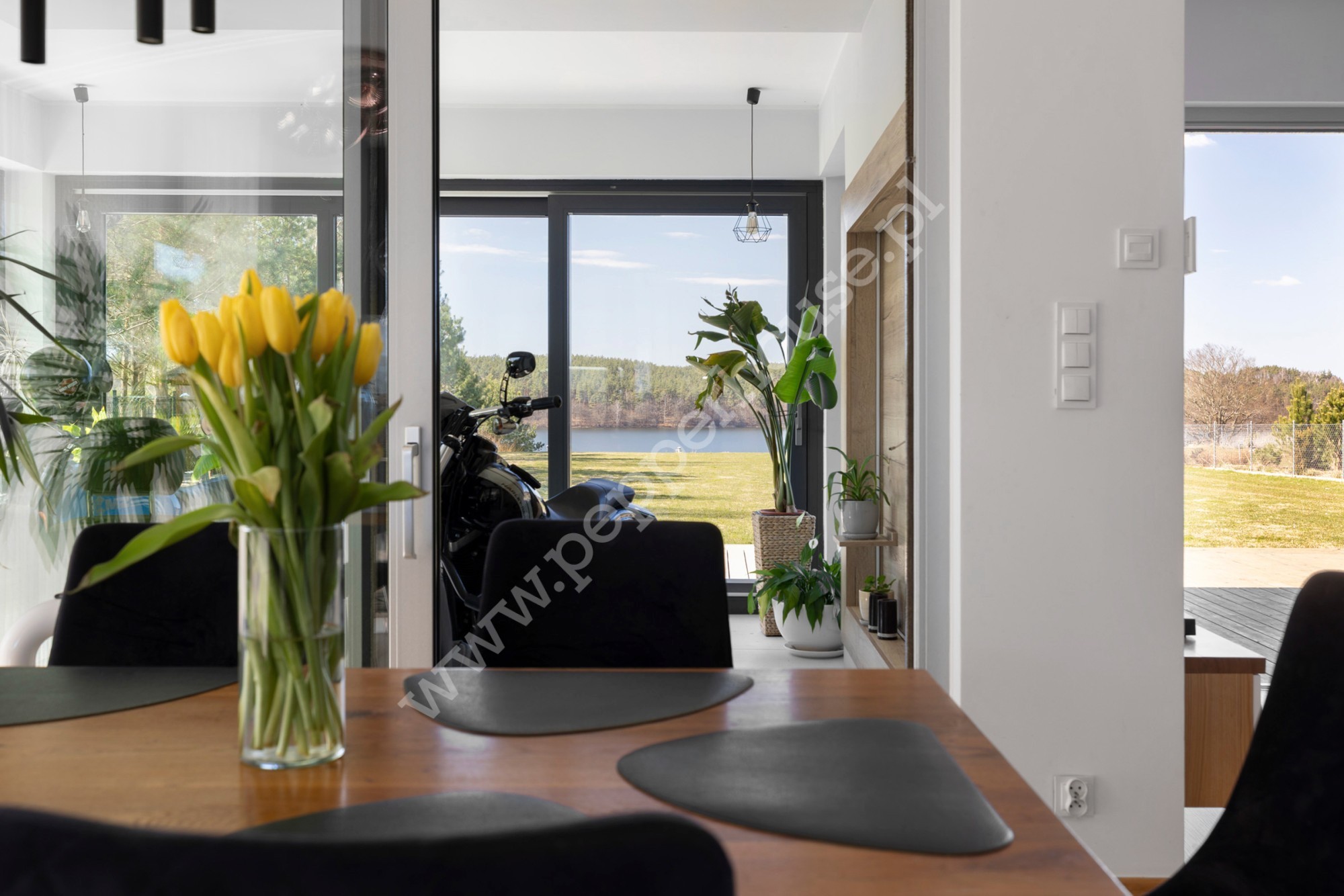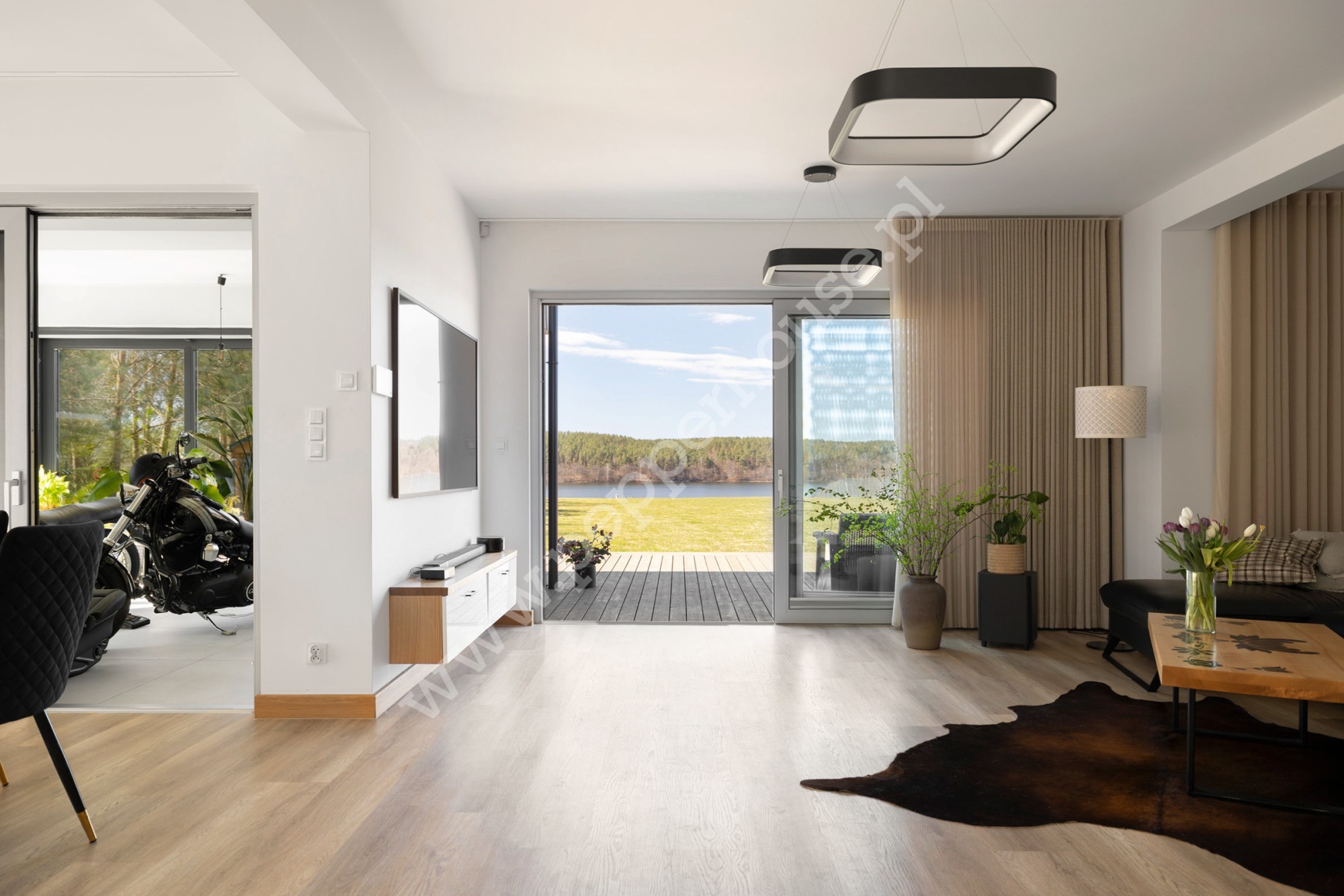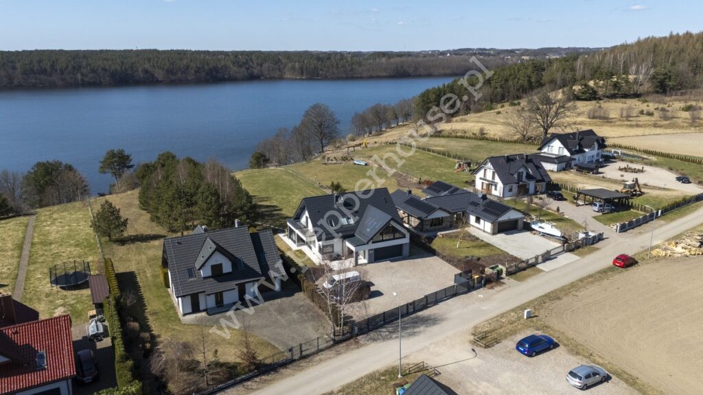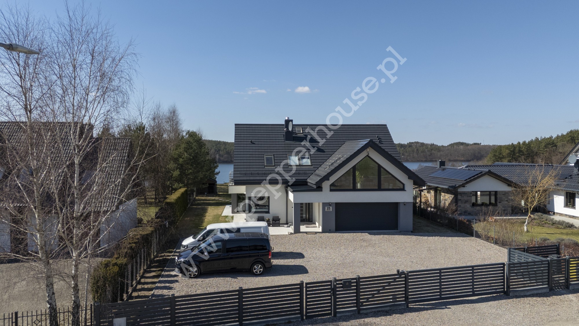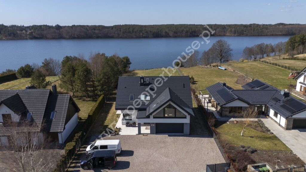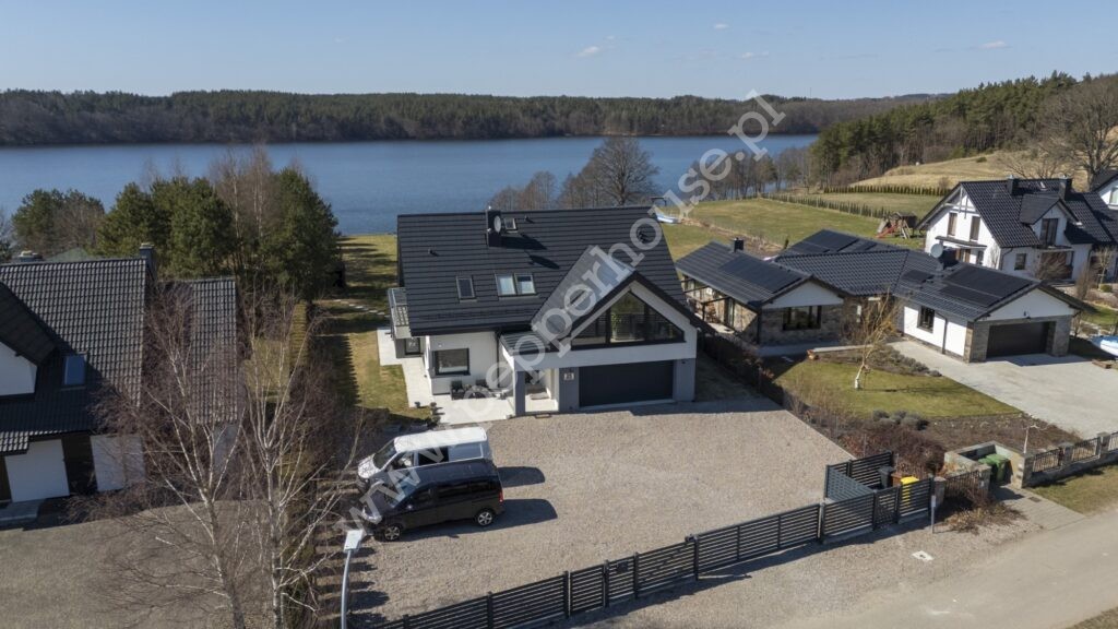 Wyjątkowy, nowoczesny dom położony na dużej działce z bezpośrednim dostępem do jeziora to idealna propozycja dla osób ceniących komfort, przestrzeń i bliskość natury. Nieruchomość oferuje 209,69 m² funkcjonalnej powierzchni mieszkalnej oraz prywatne zejście do jeziora. To miejsce, w którym sielski klimat łączy się z nowoczesnymi rozwiązaniami technologicznymi.
