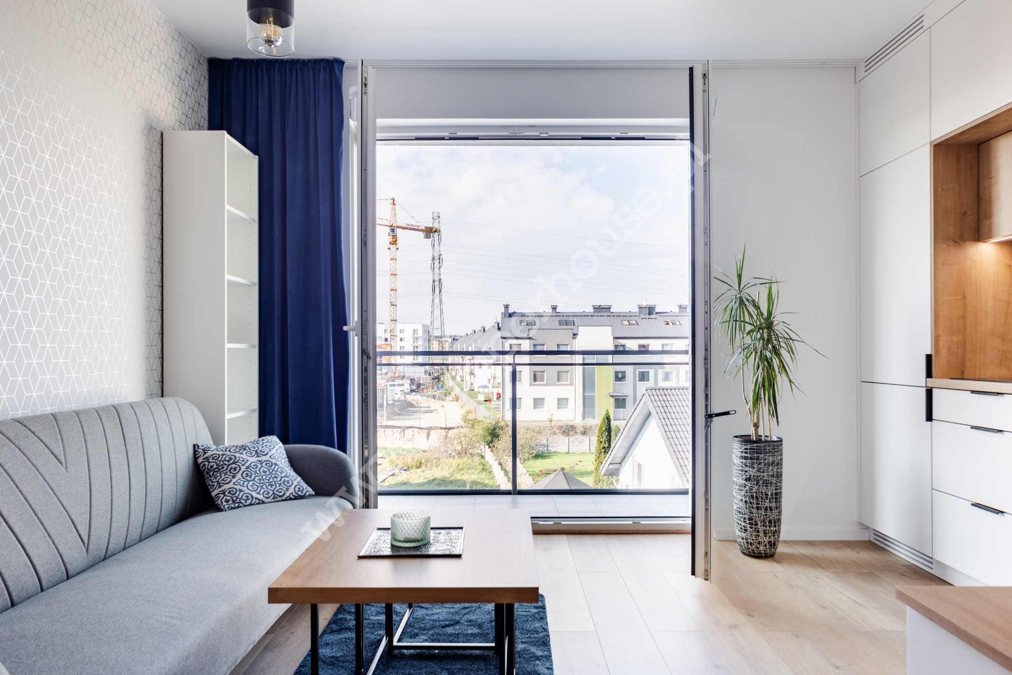 – pokój z aneksem kuchennym z wyjściem na duży balkon