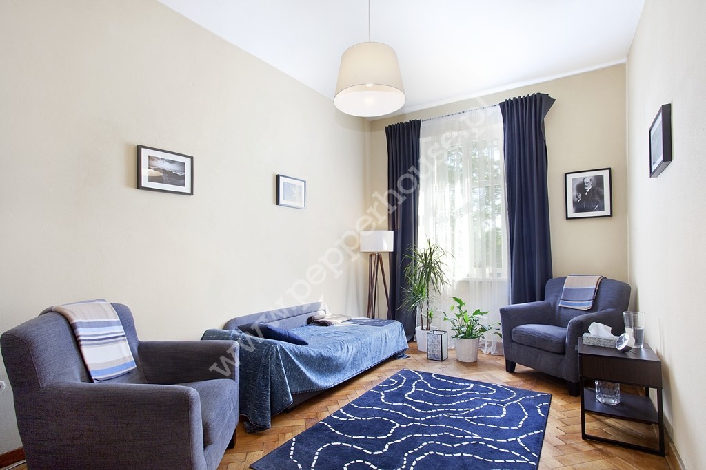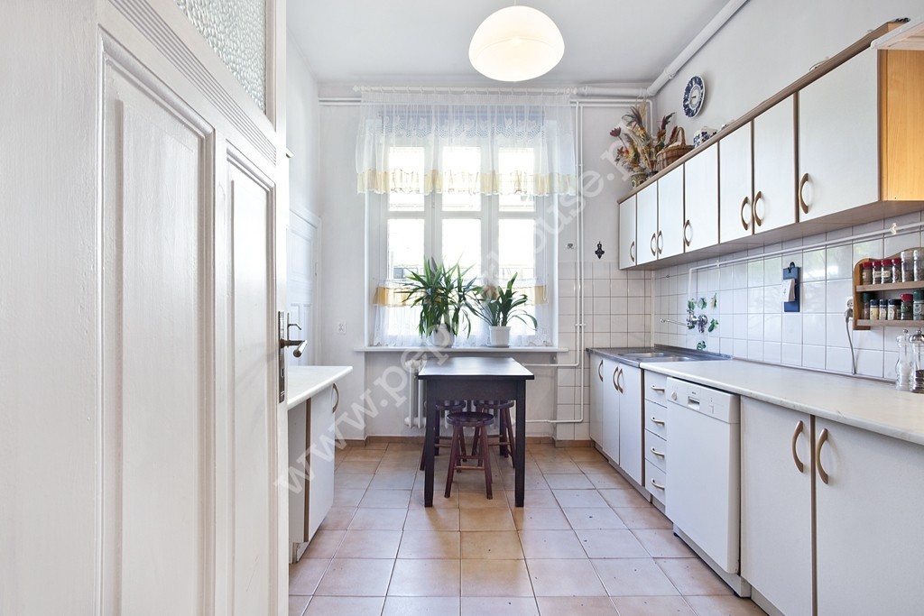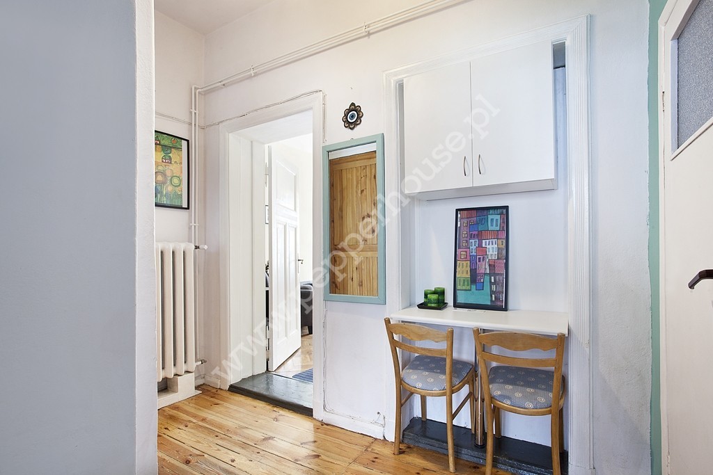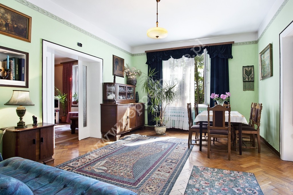 Niemal każde pomieszczenie (w tym 2 łazienki z nową hydrauliką i elektryką), okna (z ekspozycją na wschód, zachód, południe) oraz wszystkie instalacje były odnawiane. Mieszkanie potrzebuje jedynie delikatnego odświeżenia. Dębowa podłoga ma pamiątkowe rysy po psach właścicieli, jednak wszystkie skazy dodały jej tylko uroku. W cenie nieruchomości pozostaje całe umeblowanie, w tym przepiękne przedwojenne meble. Mieszkanie skrywa kilka perełek, jak np. przesuwne drewniane drzwi z kryształowym oszkleniem.
