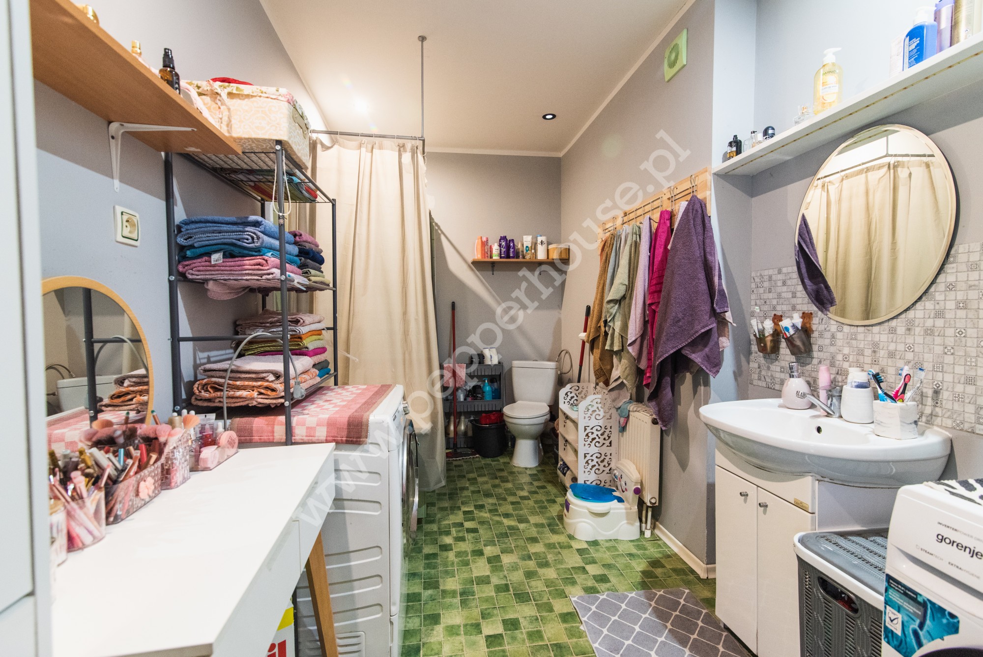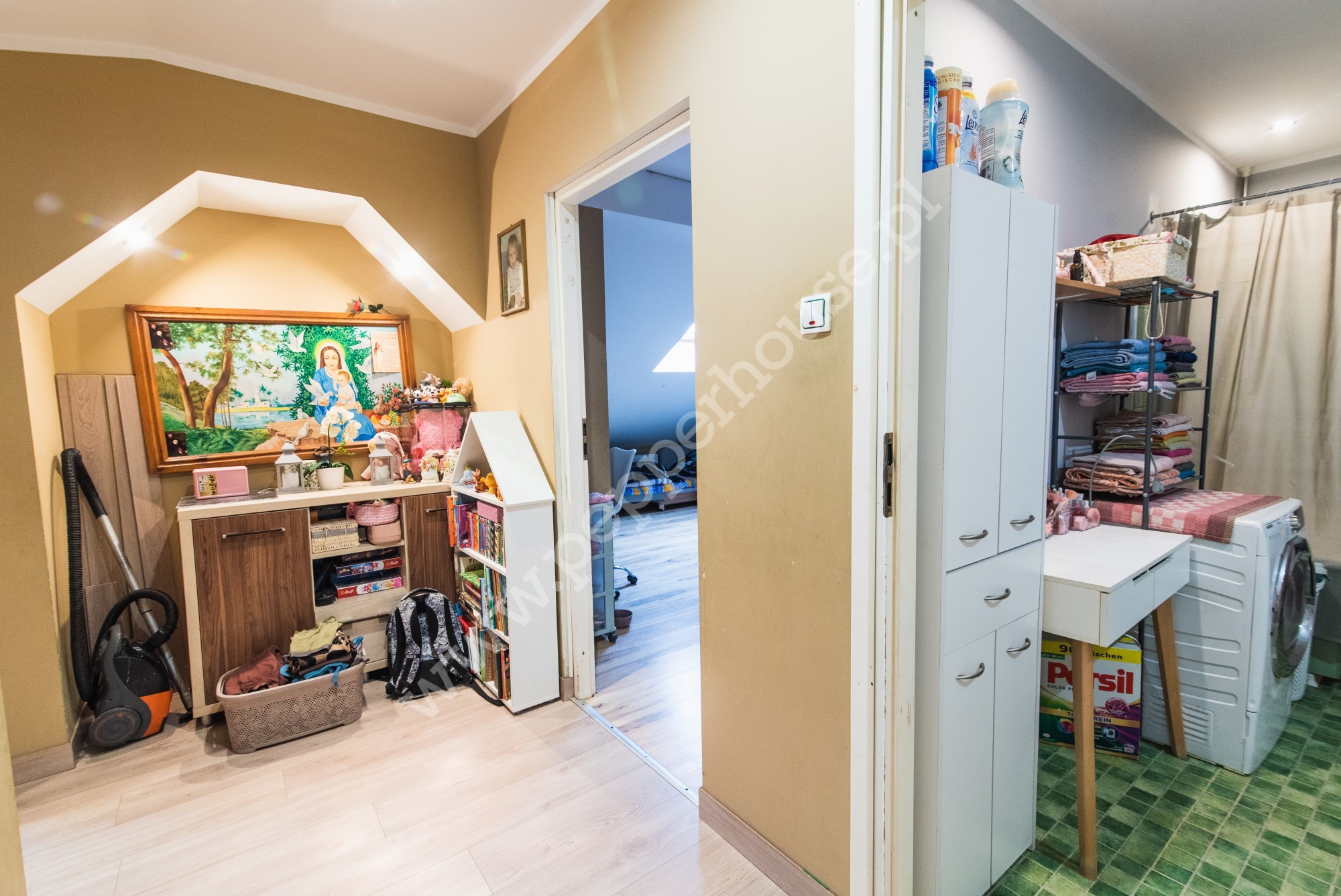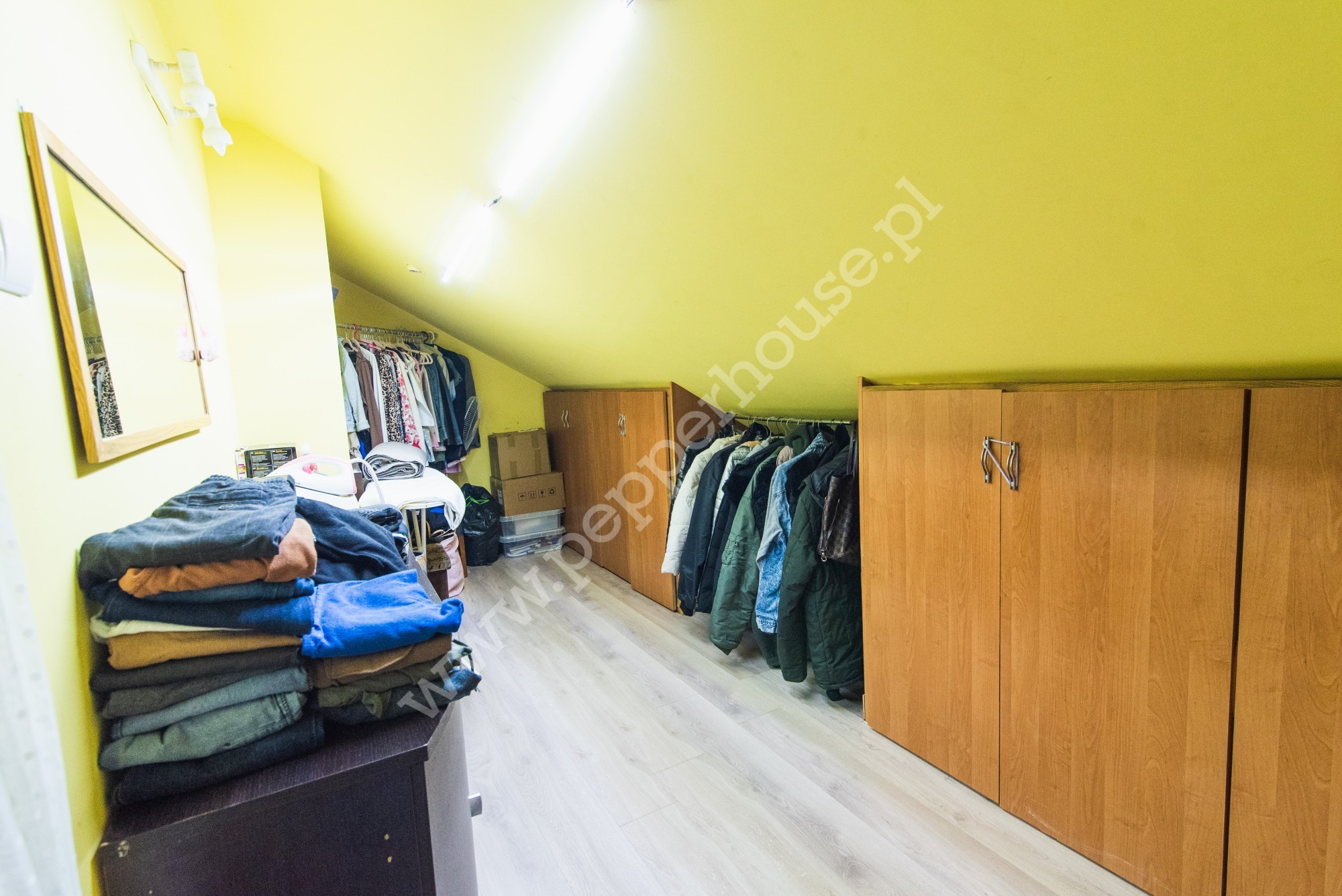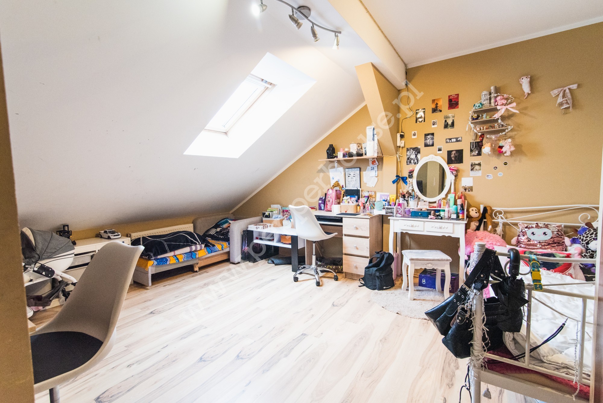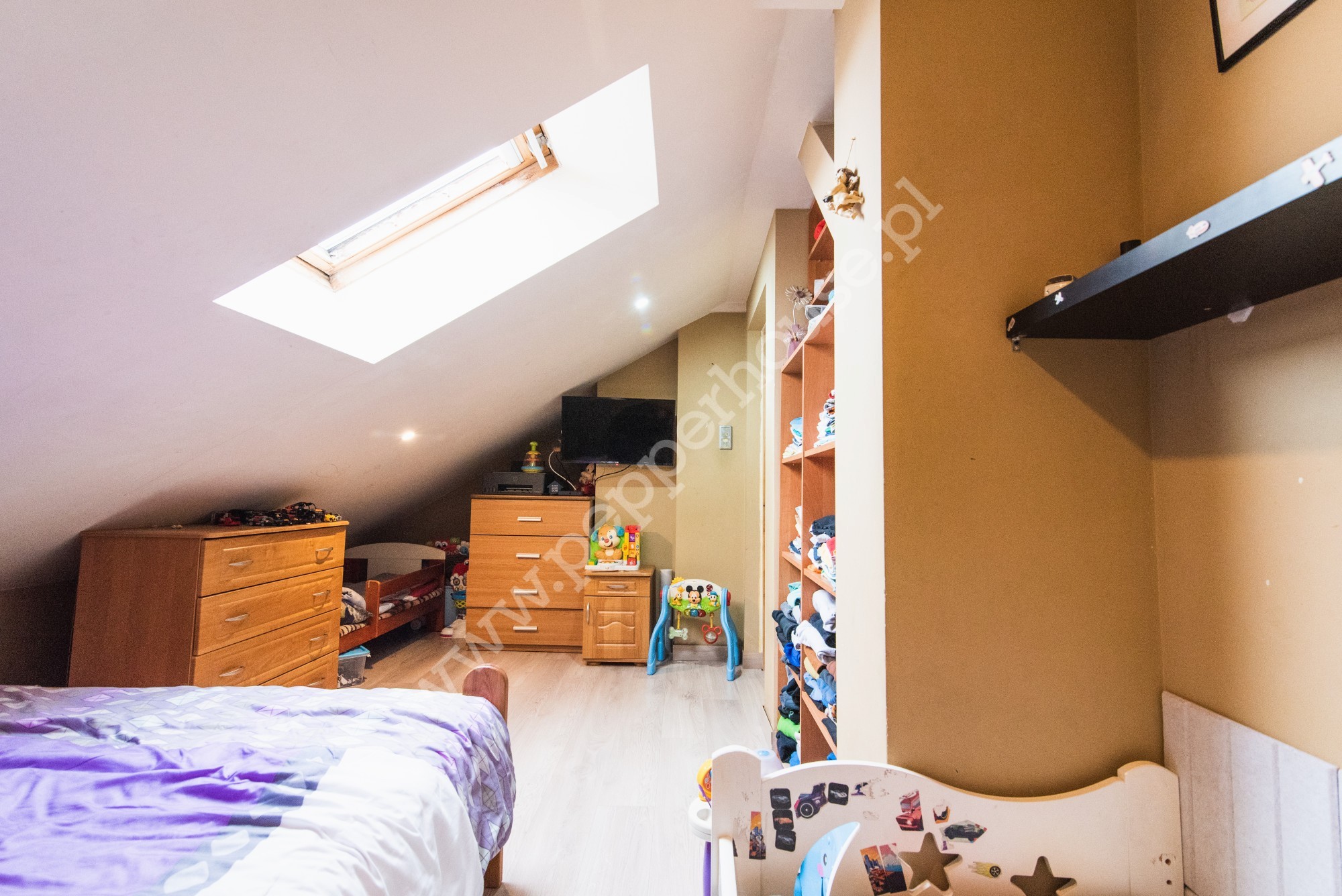 Drugi poziom to strefa prywatna, w której znajdują się dwa oddzielne pokoje, łazienka oraz garderoba. Układ ten zapewnia wygodę domownikom, prywatność oraz praktyczne miejsce do przechowywania.