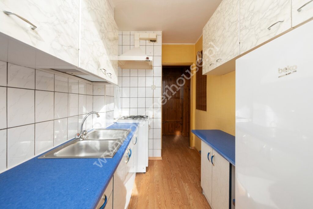 Lokal o powierzchni 47,00 m2 składa się z ustawnego salonu z dużym balkonem.2 pokoi (jeden pokój przejściowy z salonu) , oddzielnej kuchni, łazienki oraz przedpokoju. Dodatkowo do mieszkania przynależy piwnica. W budynku nie ma windy.
