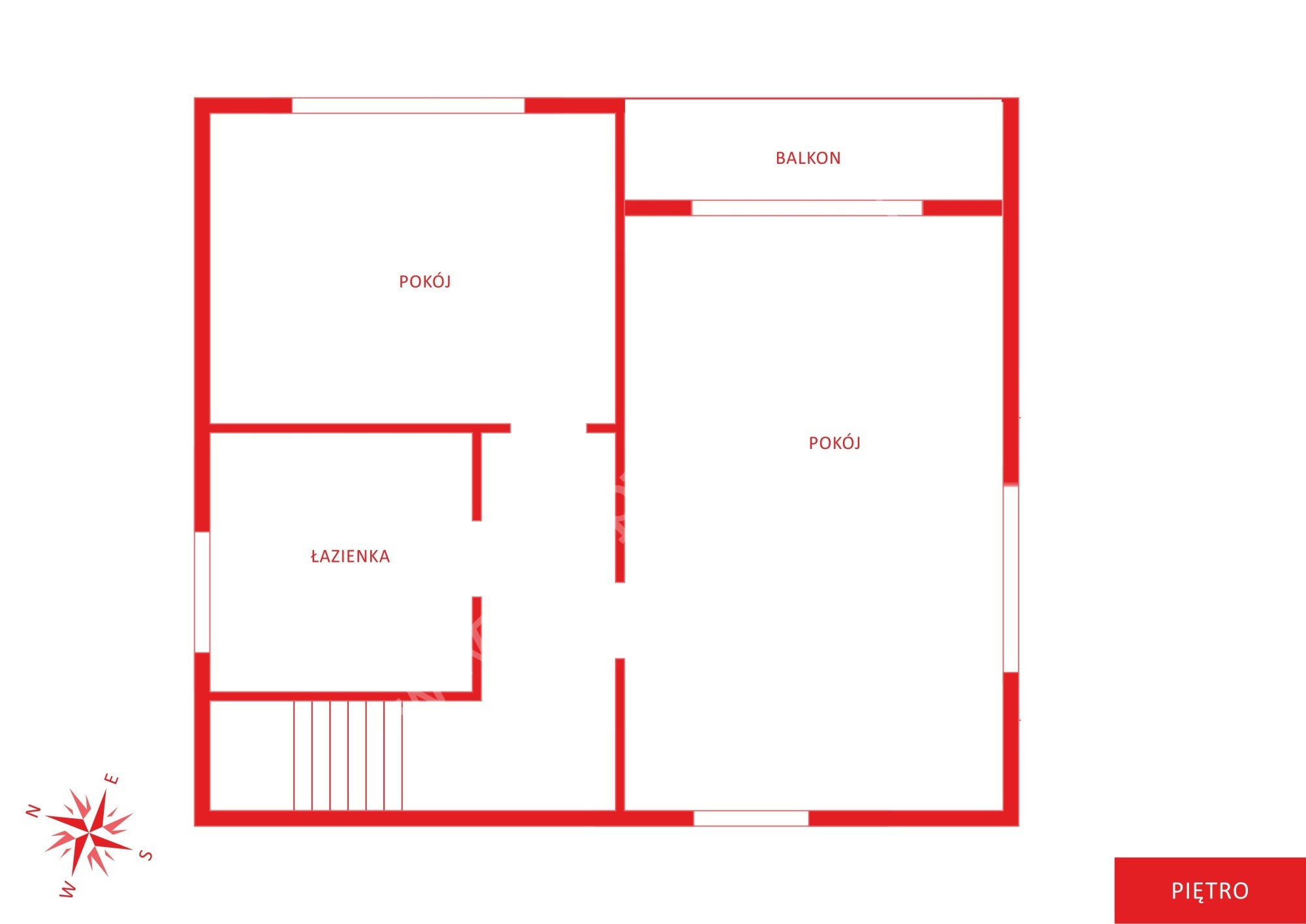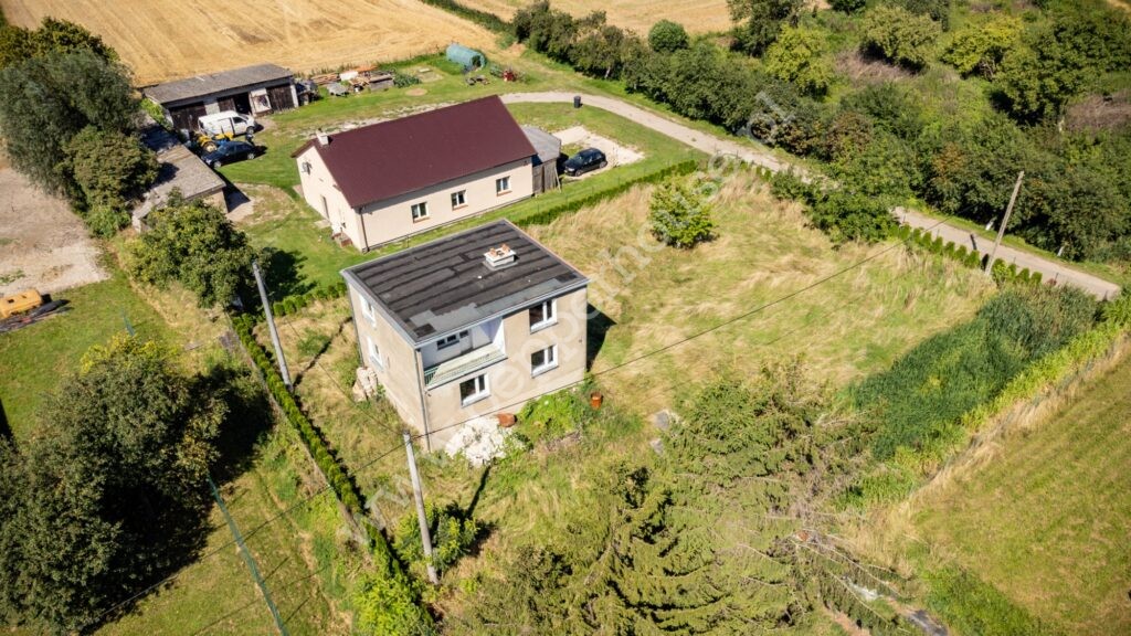Dwupiętrowy budynek podpiwniczony w formie klasycznej kostki z lat 60 tych, z dachem płaskim (planowanym jako taras widokowy). Możliwość podziału na dwa niezależne mieszkania – parter/piętro (apartamenty wakacyjne) lub pozostawienie układu jako domu jednorodzinnego.