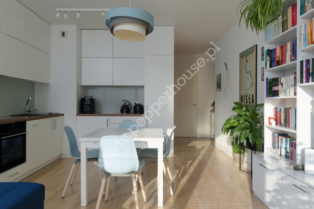 - jasny i ustawny salon z aneksem kuchennym