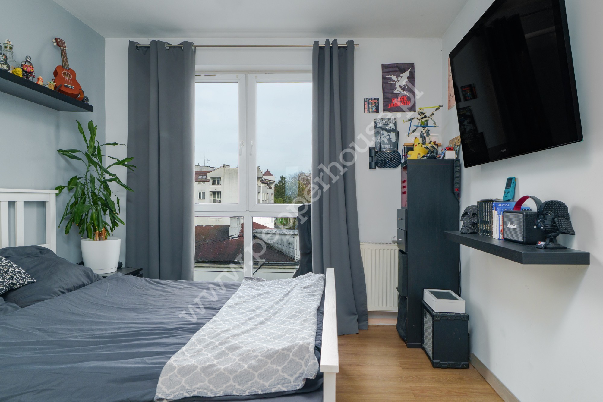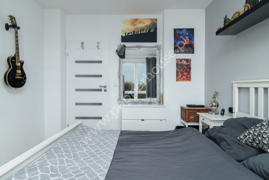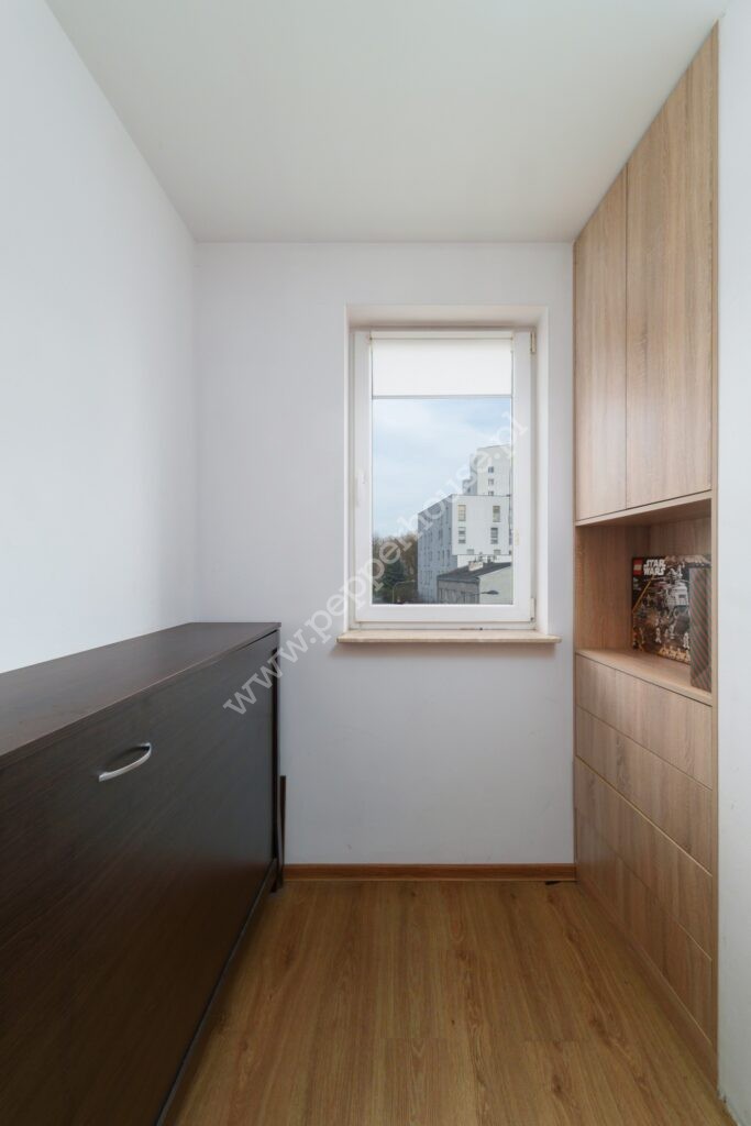 Mniejszego pokoju, idealnego na gabinet, pokój dziecka lub elegancką garderobę. M.in. znajduje się tam składane łóżko, które wygląda jak komoda