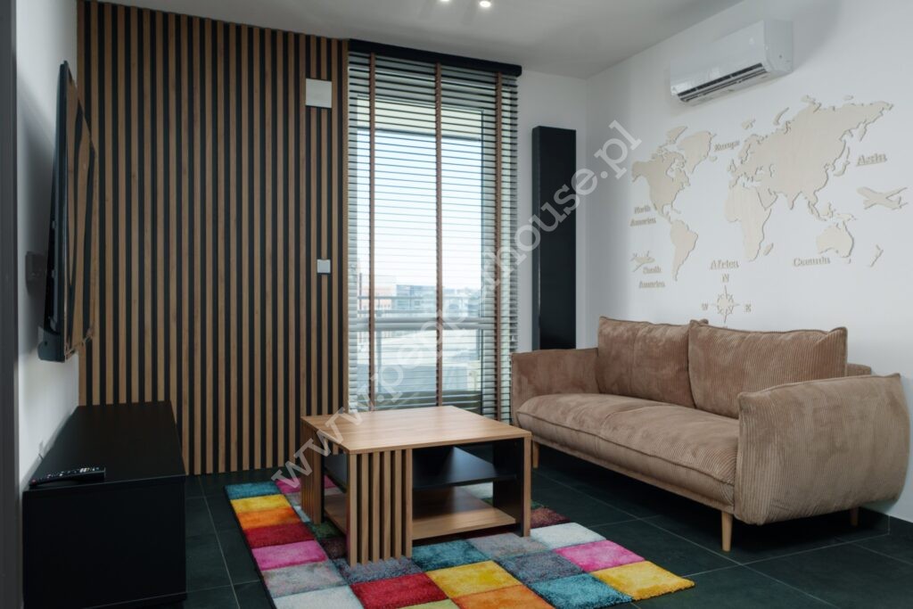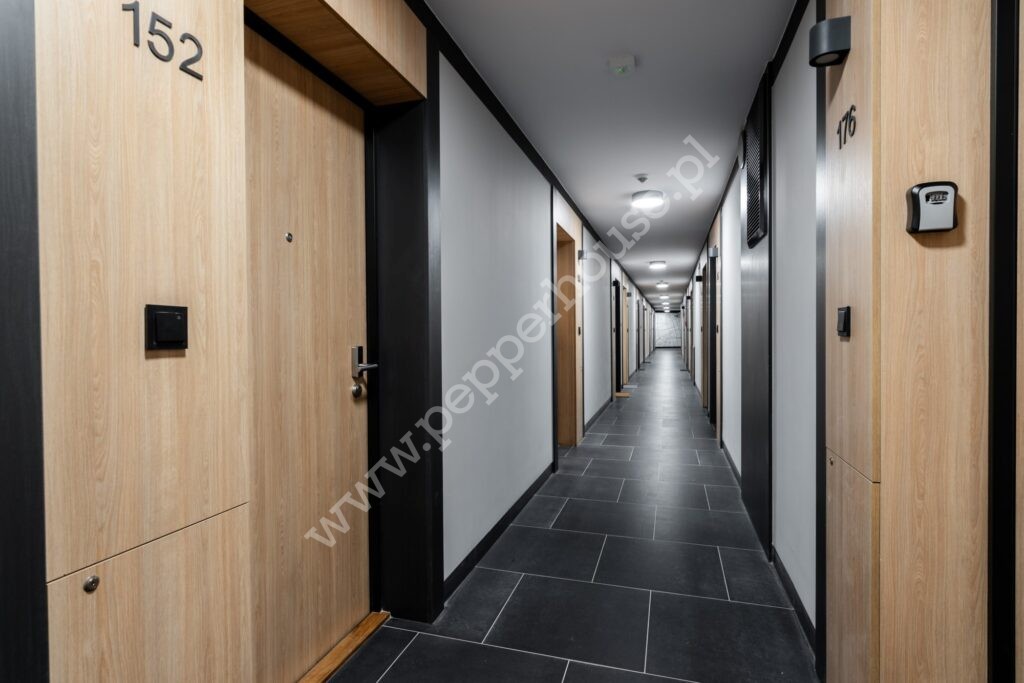 Nieruchomość mieści się na V piętrze siedmiopiętrowego, nowoczesnego bloku. Części wspólne zostały wykończone w wysokim standardzie, do dyspozycji mamy nie tylko reprezentacyjne lobby, ale również siłownię, przechowalnię bagażu, pralnię, saunę do dyspozycji mieszkańców. O bezpieczeństwo mieszkańców dba całodobowa ochrona oraz monitoring.