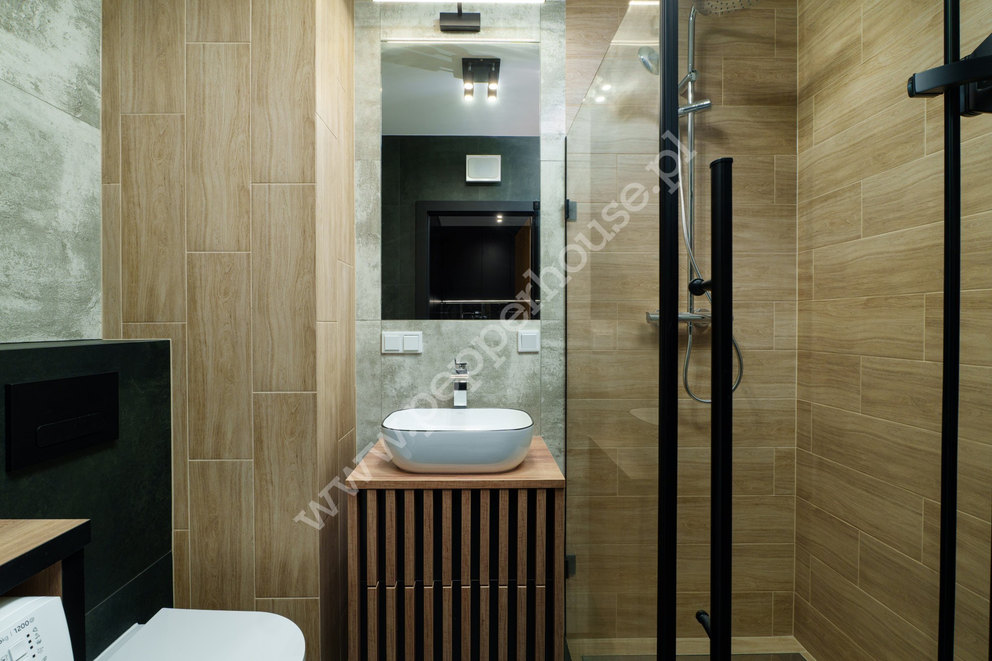 Nowoczesną łazienkę z prysznicem typu walk-in